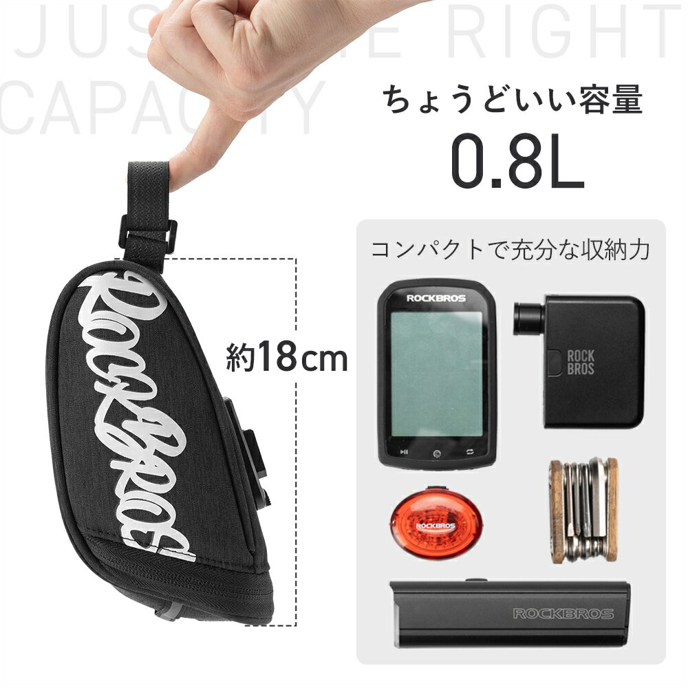 サドルバッグ 【送料無料】 自転車 コンパクト 小さい 容量0.8L 超軽量 113g テールライト取付可能 反射材 クイックリリース 取り外し簡単 安定 揺れない 全長約18cm 取外可能 工具不要 サドルレール固定 通勤 通学 ロードバイク サイクリング マウンテンバイク 30130082