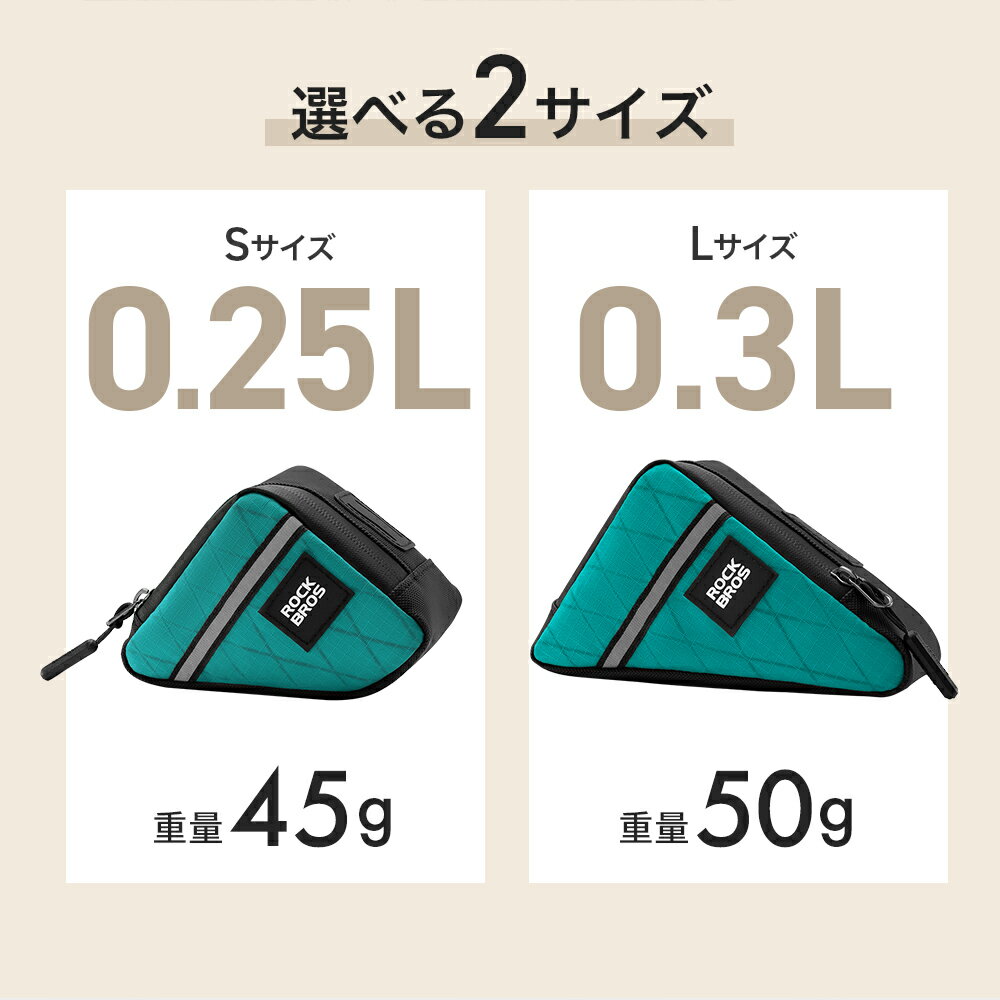 【ミニベロや折りたたみ自転車に最適なミニフレームバッグ!】 ブロンプトンなどの折りたたみ自転車のあの隙間にジャストフィット ・ブロンプトンのあのデッドスペースに合わせてデザインされたフレームバッグ ・ブロンプトン以外でも、アイデア次第で三角ミニフレームバッグとして使えます◎ ・0.25L or 0.3Lから選べる容量 ・携帯工具や予備チューブ、小型空気入れなどの収納におすすめ ・ファスナーはL型に開くから、取り付けたままでも中身を探しやすい! ・さらにバッグのフチにファスナーを配置。中身へのアクセスが良く出し入れしやすい ・45g or 50gと超軽量なのも嬉しいポイント ・幅はわずか5.5cm!ペダリングの邪魔にならずチェーンにも干渉しにくい ・ファスナーの分、左側が少しだけ出っ張っているから、取出しもしやすい ・バッグ単体でも、ポーチとしても使用できる2WAY 【商品詳細】 ■容量:Sサイズ(約0.25L)/Lサイズ(約0.3L) ■サイズ Sサイズ:約10.5cm*9.5cm*奥行5.5cm Lサイズ:約10cm*13cm*奥行5.5cm ベルクロの太さ:幅約2cm(全長30.5cm×3本) ■重さ:(固定ベルト×2を含む) Sサイズ:45g / Lサイズ:50g ■素材:ナイロン+ポリエステル ■防水/撥水:なし ■付属品:ベルクロベルト 約30.5cm*3本 【ご注意ください】 ※ご使用のモニターによっては、色味が異なって見える場合があります 【管理番号】 ■Sサイズ(0.25L) SKU:30180024001 JAN:4570122027484 ブラック SKU:30180024002 JAN:4570122027491 シアンブルー SKU:30180024003 JAN:4570122027507 カーキ SKU:30180024004 JAN:4570122027514 カーキグリーン SKU:30180024005 JAN:4570122027521 ホワイト ■Lサイズ(0.3L) SKU:30180025001 JAN:4570122027538 ブラック SKU:30180025002 JAN:4570122027545 シアンブルー SKU:30180025003 JAN:4570122027552 カーキ SKU:30180025004 JAN:4570122027569 カーキグリーン SKU:30180025005 JAN:4570122027576 ホワイト 同デザインのトップチューブバッグはこちら