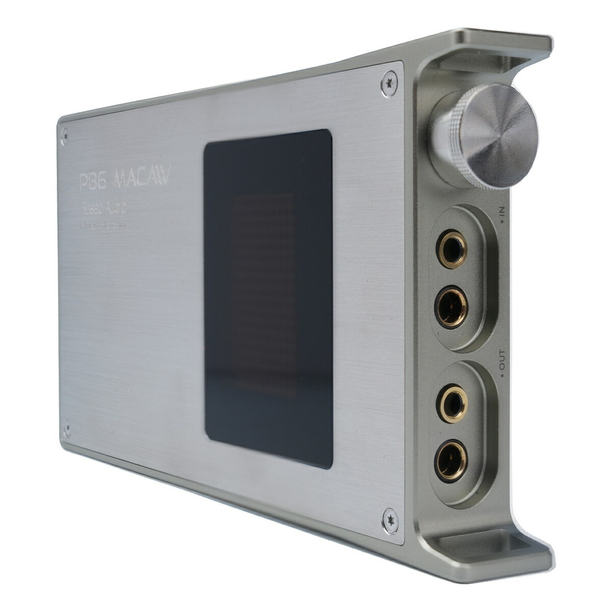 製品概要 PB6はRaytheon JAN6418直熱型5極管を4基採用し、4chのフルバランスアンプ構成を採用しています。 iBassoは従来の真空管デバイスにも採用してきた、最大22.5Vのアノード(陽極)電源設計を採用することで、十分なヘッドルームとパワフルなダイナミクスを叶えています。 これにより、まろやかで温かみのある真空管のフレーバーを付与し、リアリティと自然な余韻を感じることができる、上品なサウンドを実現しています。 採用する真空管パーツはAPX555による厳格なテストと、手作業によるマッチングを経てPB6へと搭載されています。 PORONサスペンション防振構造+メタルメッシュシールド 振動によるマイクロフォニックノイズを低減するために、PB6に採用された4基の真空管には高機能ウレタンフォームPORONによるサスペンションを採用し、筐体の振動がサウンドに与える悪影響を効果的に遮断しています。 真空管の外側にはメタルメッシュシールドを装備し、特定周波数帯域への外部電磁干渉を効果的に遮断することで、サウンドへ不要なノイズの混入を防ぎ、クリーンなサウンドを維持しています。 これによりPB6はポータブルシーンでも、クリアでピュアなリスニングを叶えています。 TUBE + Class ABデュアル出力モード搭載 温かみのある真空管サウンドと、みなぎるパワフルサウンドを一挙両得 PB6はTUBEモードと、Class ABモードの2種の出力モードをユーザーの手で自由に切り替えることができます。 TUBEモードでは、4基のJAN6418真空管をコアとした、まろやかで温かみのある滑らかなサウンドをもたらします。 Class ABモードでは、クラシカルなOPAMP+BUFのヘッドホンアンプ回路を採用し、バッファー回路にはBUF634Aを4基採用し、優れた電流増幅性能を実現し、パワフルで卓越したサウンドをもたらします。 PB6は、一台のポータブルヘッドホンアンプでありながらも、2種の優れたサウンドを奏でることができる、革新的なアーキテクチャを備えたオーディオデバイスです。 8.4V 高電圧バッテリーパック 高電圧電源を内蔵、クリーンでパワフルな駆動 PB6は4.2V 2000mAh×2の8.4V高電圧バッテリーパックを搭載し、従来の単一3.7Vのバッテリーで駆動するポータブルデバイスと比較しても、電源効率と電源過渡応答性能が大幅に向上しています。 DC-DCコンバーターによるリップルノイズを大幅に低減し、クリーンな電源システムを基盤にオーディオ回路に強力な駆動力を提供することができ、サウンドのディテールとダイナミクスを忠実に再現することが可能です。 12V DC外部電源に対応 デスクトップクラスへとサウンドを飛躍 PB6は内臓バッテリーをバイパスする、12V DC-INの外部電源に対応しています。 DC-IN使用時、ヘッドホンアンプは±12Vの高電圧下で動作することで、フルポテンシャルを発揮します。 32Ω負荷時で最大2300mW+2300mWの高出力を実現することで、フルサイズのヘッドホンや高インピーダンスヘッドホンも容易に駆動することができ、重厚で力強い低域と優れたトランジェントレスポンスを提供します。 ポータブルデバイスをデスクトップクラスのサウンドへと昇華させることで、ポータブルとデスクトップの垣根を超えた、シームレスな運用が可能になっています。 NJW1195A 高精度4ch電子ボリュームを採用 PB6には抵抗ラダー型ボリューム「NJW1195A」を採用し、減衰時の歪みを低減することで0.5dBステップの微調整を実現しています。 ハードウェアのボリュームコントロールにより、ベースノイズを効果的に低減することで、漆黒の背景により優れた没入感を提供しています。 音量はハードウェアによるデジタル制御方式で調整され、一般的なカーボンフィルムを採用したポテンショメーターが低音量時に生じるギャングエラーや、劣化によるデメリットを解消することで、ユーザビリティを向上しています。 高低帯域デュアルコントロール バンドワイズモードを搭載 ヘッドホンアンプの出力段に「BUF634A」による、高帯域モードと低帯域モードの2種類を提供し、お好みのサウンドスタイルへとカスタマイズすることができます。 高帯域モード[H]ではトランジェントが向上し、卓越したダイナミクスと解像度を発揮します。 低帯域モード[L]では音像感がより柔らかく温かみのある表現になります。 この2種のサウンドスタイルの切り替えと、TUBEとClass ABの出力モードを組み合わせることで、多彩かつ個性豊かなリスニングニーズを満たすことができる、革新的なアドバンテージをユーザーに提供します。 3.5mm+ 4.4mm IN/OUT搭載 3.5mm to 4.4mmバランスアウトに対応 PB6は3.5mmシングルエンドと4.4mmバランス出力を備え、シングルエンドとバランスの2種の入力もサポートしており、3.5mmシングルエンドから入力された場合にも、4.4mmバランスより出力することができます。 これにより、3.5mmシングルエンド端子のみを備えたプレーヤーからPB6へ接続した場合でも、高解像度と力強いダイナミクスを享受した、4.4mmバランス出力を叶えることができます。 こ