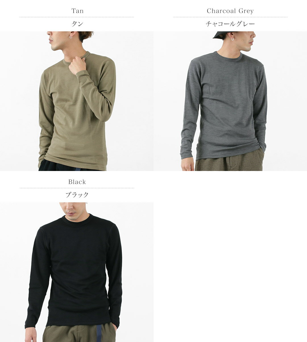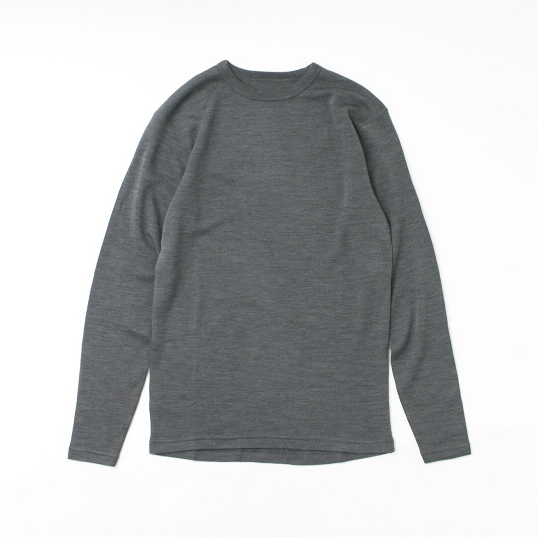 サイズ(cm) XS S M L 肩幅 39 42 45 48 身幅 43 46 49 52 袖丈 60 61 62 63 着丈 66 68 70 72 ご注意 ※商品によって1〜2cmの誤差がある場合がございます。※ご利用のモニター環境により色味が実物と異なって見える場合がございますので、予めご了承ください。 サイズでお悩みの方はこちら>> 生地 厚さ 標準 硬さ 柔らかめ 伸縮性 あり スペック&素材 素材 スーパーファインメリノウール100% 重量 約 290g(サイズL) 生産国 MADE IN CHINA 洗濯表記 詳しくはこちら⇒ スタッフ試着コメント ●スタッフ(165cm/52kg) 体型:痩せ型着用:サイズXS XSでちょうどいいサイズ感です。着丈はヒップに軽くかかるほどで、身幅と袖はジャストサイズ。1枚でもインナーとしても着られる程よい厚みの生地ですね。 ●スタッフ(171cm/61kg) 体型:普通着用:サイズS XSサイズだと着丈がやや短かめで、Sサイズで丁度良いサイズ感でした。Sサイズの着丈はヒップ半分ほどで、長すぎず短すぎない丈感、肩幅はジャスト。伸縮性がかなりあるので、ストレスフリーな着心地です。 ●スタッフ(177cm/67kg) 体型:普通着用:サイズM 肩幅もジャストサイズで、丁度良いサイズ感です。着丈はヒップの半分ほど。ウールのチクチク感を感じない滑らかな触り心地が良いですね! ●スタッフ(181cm/80kg) 体型:ガッチリ着用:サイズM ちょうどいいサイズ感です。伸縮性がある素材なので、窮屈感なく着られます。着丈はヒップの半分ほど。1枚でもインナーとしても着られるので幅広いシーンで活躍してくれそうです。 ラッピングはこちら>> ※ メーカー希望小売価格はメーカー商品タグに基づいて掲載しています。極細羊毛を使用した肌に優しいインナー アメリカ北東部ニューハンプシャー州の歴史あるウール生地メーカーが開発したメリノウールブランド「MINUS33」より、極細のメリノウールを使ったインナーをご紹介。 厳選された18.5マイクロン以下のスーパーファインメリノウールのみを使うことで、チクチクしない優しい肌触りに。保温性・吸湿性にも優れており、寒い冬も暖かく、快適にお過ごしいただけます。 MINUS33(マイナス33) アメリカで設立された、メリノウールを使用したウェアを製造する会社。テレマークスキーやリージュのアメリカ代表選手のウェアスポンサーに採用されるなど、ウィンタースポーツでの信頼性が非常に高いメーカーです。 やさしい肌触りと優れた吸湿性 厳選された18.5マイクロン以下のスーパーファインメリノウールのみを使用。ウール特有のチクチク感が苦手な方も安心の柔らかく滑らかな肌触りが魅力です。 メリノウールは、身体から出る水分を素早く吸湿し、生地を通して大気中に放出する特性があり、水分が汗などの水滴になるまえに放出するので化繊インナーとは違い、生地が肌にまとわりつくことなく快適な状態を維持できます。 保温性と防菌防臭機能 ウール繊維はクリンプと呼ばれる縮れがあり、それが絡み合うことで繊維の間にたっぷりと空気を含みます。この空気の層が外気を遮断し、暖かい空気を閉じ込める役割を果たし、保温性をキープ。 さらに、ウールには抗菌・免疫機能があり、においの原因となる細菌の繁殖を抑えクリーンな状態を保ってくれます。 また、洗濯機で洗うことができ、お手入れしやすいのもポイントです。 幅広いシーンで活躍 1枚でも着られる絶妙なサイジングと、肉厚すぎない程良い厚みの生地なので、ベースレイヤーだけでなく普段着のロングTシャツとしても活躍します。 伸縮性に優れた生地なので動きを妨げず、日常使いはもちろん、ハイキングや登山、アウトドアシーンなどアクティブに過ごす日にもぴったりの1枚です。 シンプルなディテール 首元はスッキリとした印象のクルーネックを採用。 ネック周りは伸縮性のあるパイピングで優しくフィットします。 MINUS33 一覧はこちら >>