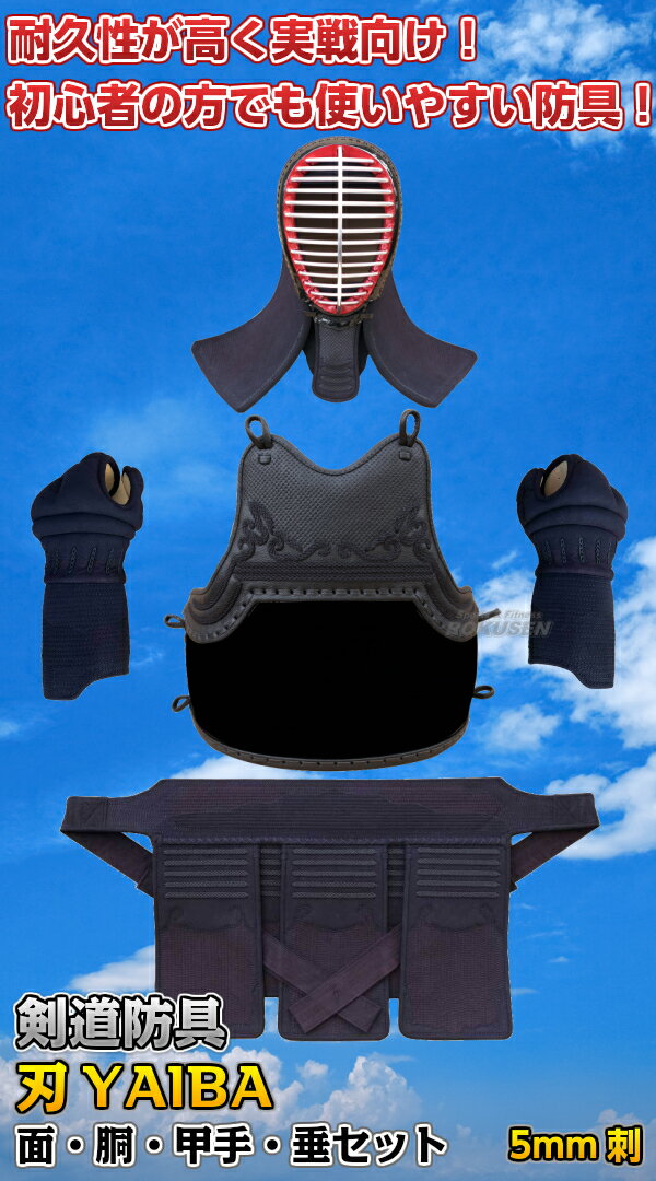 防具のお取扱いについて 面 使用後は必ず乾いた布で拭いてください。特に包輪はもっとも汗を吸う部分ですので入念に拭いてください。 時々陰干しやブラシがけをしてください。 手入れが済んだら布団に折りグセをつけて保管してください。次に使用する際、首や腕の動きが楽に行えます。 胴 時々陰干しをしてください。 いつまでもきれいな光沢を保つためには椿油などを薄く塗って、からぶきをしてください。 ※曙光飾りには油を塗らないようご注意ください。変色する恐れがあります。 甲手 使用後の陰干し、ブラシがけ、手の内の乾いた後のもみほぐしなど必ず行ってください。 日光に当てて乾かすことは絶対に避けてください。革がカラカラになってすぐに破れてしまいます。 垂 胴と重なり合ってこすれる部分が傷みやすいですので、よく点検してください。 芯地がボロボロになる前に修理をしてください。 帯と大垂のつなぎ部の留め革が切れてしまったらすぐに修理してください。大垂の部分がブラブラになると傷みが早く、修理費が高くなることがあります。【武藤 剣道】剣道防具 面・胴・甲手・垂セット 刃 YAIBA 5mm刺 紺人工皮革 大人サイズ BY5 ※人工皮革使用の耐久性が高く実戦的な剣道防具セット※ ■ 商品説明 ■ 動きやすく、人工皮革を使用した耐久性の高い剣道防具セットです。 面布団はショートタイプで短く、腕の動きを妨げないため、非常に動きやすく実戦的な作りです。 胴は50本型胴で見た目にも高級感があります。 甲手はスポットミクロパンチ加工で汗抜けがよく、甲手布団は雲形。 垂は大きい雲形仕様になっており、ヘリ革近くはミシンを細かく刺しており厚みを感じさせず動きやすくできています。 目を守るためのアイガードも標準装備しており、機能性とコストパフォーマンスを兼ね備え、価格以上の価値のある防具です。 商品内容 剣道防具セット サイズ 大人用 メーカー 株式会社武藤 納期 ※この商品はメーカーからの取り寄せです。 通常ご注文後3〜5営業日程度で発送いたします。 メーカー在庫が常に変動しているため、在庫切れの場合は次回の入荷予定をご連絡させていただきます。 ■ 各部詳細 ■ 面 14本面金、内輪シルリード、袋縫仕立、面乳革、面紐、アイガード付き 胴 翼飾り、強化樹脂50本型胴、胴紐付き 甲手 総人工皮革、スポットミクロパンチ 垂 5段手飾り、先細紐 ※画像をクリックしていただくとネーム刺繍のご注文ページに移動します。
