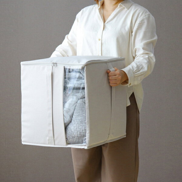 ・ カラー / アイボリー・ 製品サイズ / 約 幅 39 x 奥行 36 x 高さ 40 cm・ 材質 / ポリエステル、ポリプロピレン、PEVA・ 重量 / 約 630g・ 生産国 / ベトナム・ 収納量の目安 / シングル掛布団1枚、又は毛布1~2枚程度・ クローゼットにぴったりな布団収納ケース。芯材入りなのでしゃきっと自立して収納しやすい♪ 面倒な圧縮はせずにたたんで入れるだけ。内蓋付きで閉めやすい作りになっています。透明窓付きで中身が見えやすく、メモカードポケットも付いているので中身を書いてわかりやすく収納できます。持ち手付きで持ち運びもしやすく、クローゼット上でも取り出しやすくなっています。