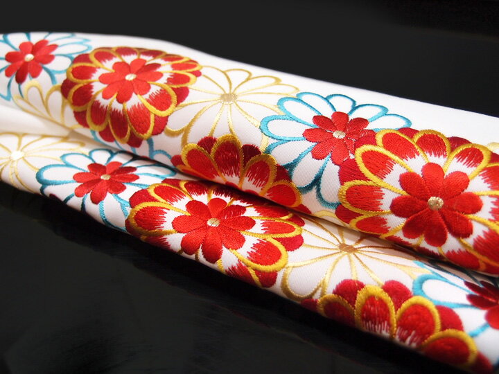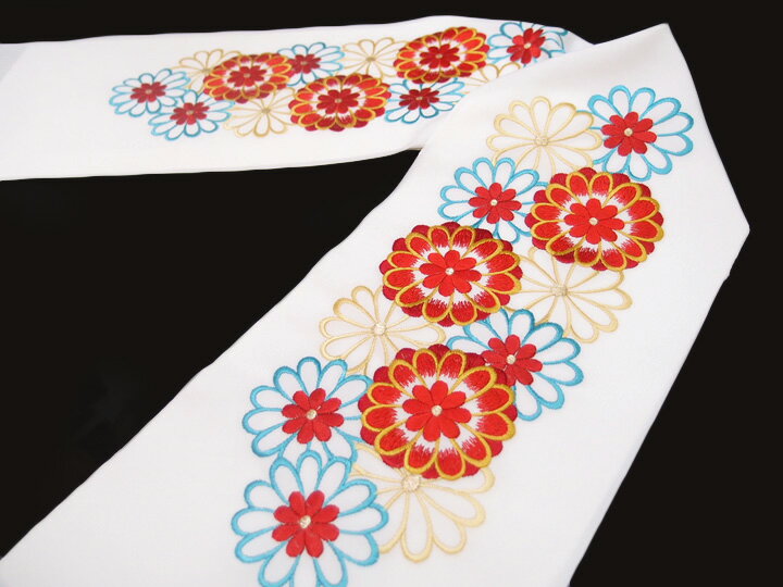 半衿 振袖 刺繍 乙女菊 花 フォーマル 成人式 03501720 No.1 白地 赤 水色 a890 Tsi