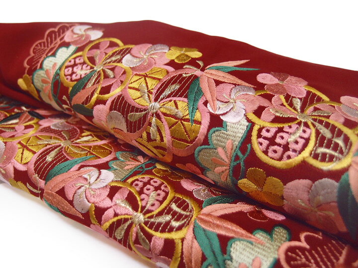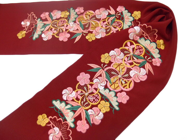 半衿 振袖 刺繍 ねじ梅 に 松竹梅 花 フォーマル 成人式 03501721 No.4 臙脂 桜色 b866 TSi