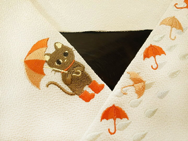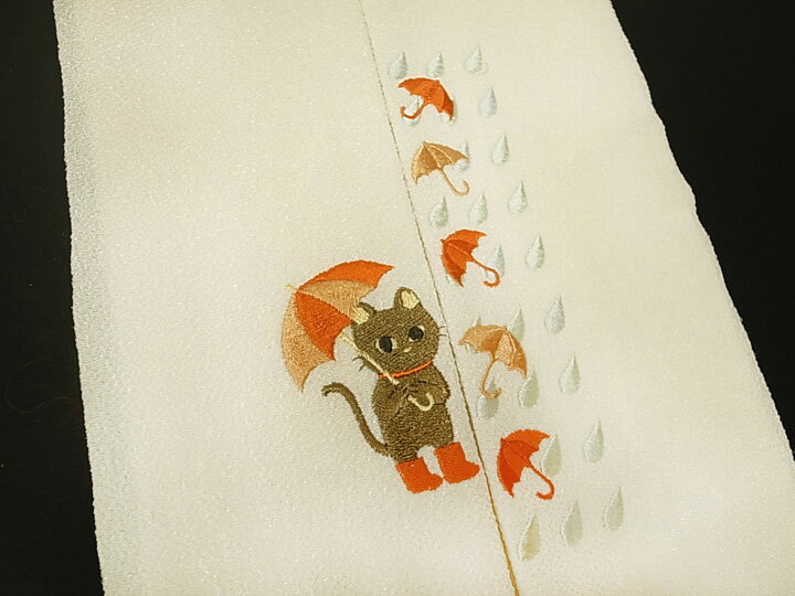 用途 小紋・紬、カジュアル着物にお使いいただけます。 状態 新品のキレイなお品ですので、 お手元に届きましたら、すぐにご使用いただけます。 素材 日本製 京都 生地:ポリエステル100% 刺繍糸:レーヨン100% 寸法 長 さ :約113.5cm 幅 :約16.5cm 色 淡いクリーム色の地に、橙色の濃淡・茶色・水色系の刺繍 画像4が実際に近いお色です。 お知らせ 土・日・祝日はお休みをいただいておりますので、 当店からのご連絡は、翌営業日となりますことを ご了承ください。 商品説明 ちりめんの生地に、かわいらしい猫、傘、雨粒を刺繍で表現した、 大変可愛らしい半衿です。 正絹の様な滑らかな肌触りのお品です。 カジュアルなデザインの素敵な半衿は身につけても 思わずウキウキしてしまいますし、お友達との話題にもなり、 着物ライフを思い切り楽しめます。着物通販 ロマン着物みやがわ ロマン着物 半衿 刺繍 ちりめん ねこ カジュアル 半襟 縮緬 猫 日本製 新品 クリーム色地 b987