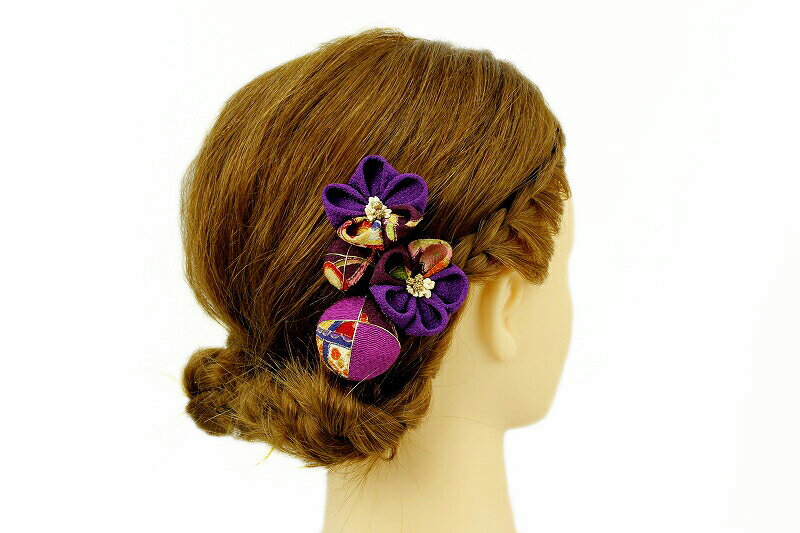 髪飾り 成人式 振袖 袴 5点セット 紫 大人 浴衣 かんざし 簪 卒業式 フォーマル 結婚式 花飾り 玉飾り つまみ細工 ちりめん 手作り W33 W303-240 髪飾り 紫 n923 WSi