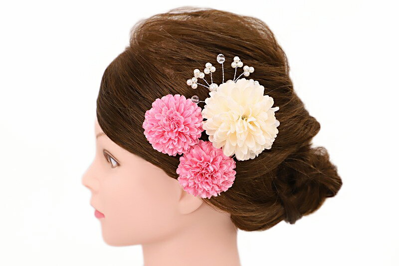 髪飾り 成人式 振袖 浴衣 卒業式 袴 結婚式 6点セット ピンク 緑 白 パール 花 和 洋 かんざし 手作り 簪 つまみ細工 ちりめんフォーマル 花飾り 玉飾り ブライダル W36 303-235 ピンク 緑 p727 Si
