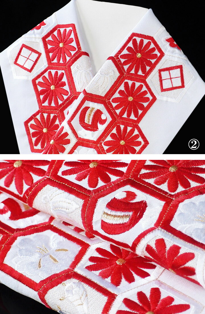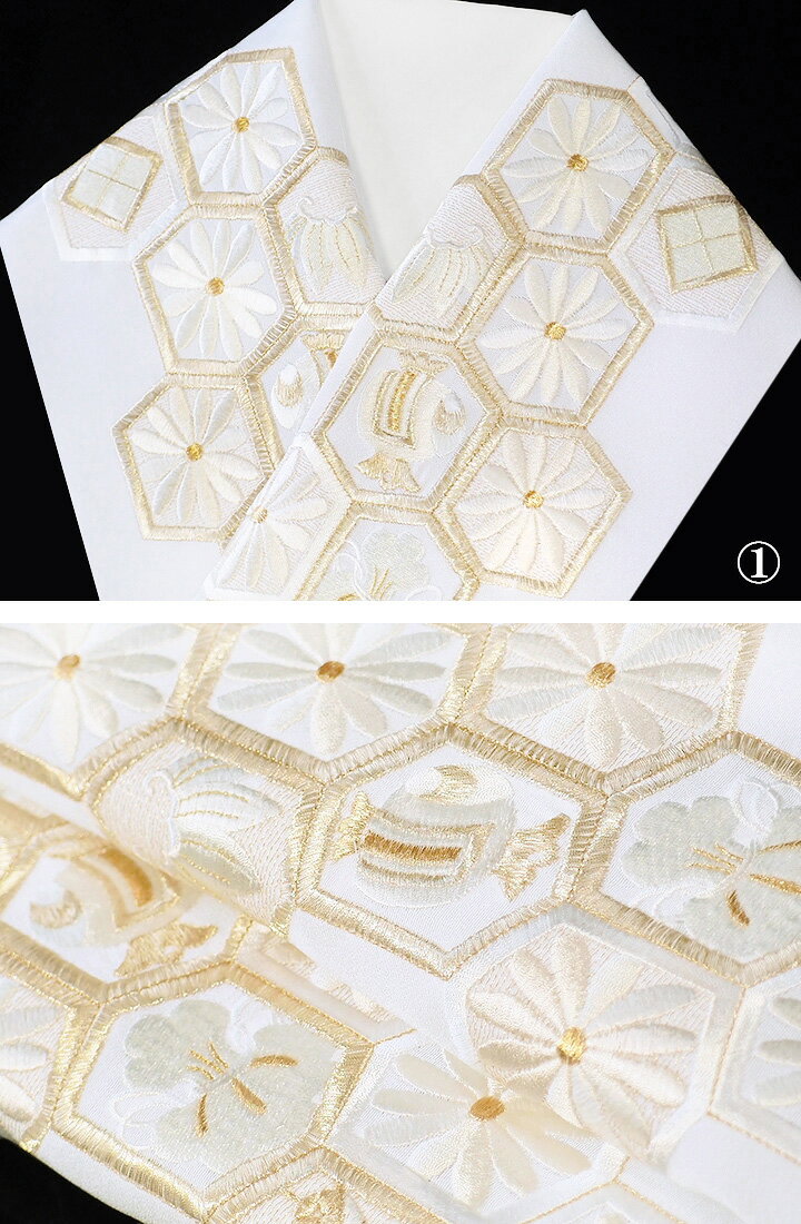 半襟 刺繍 半衿 振袖 成人式 亀甲 に 宝尽くし 菊 花 全8色 日本製 レディース 卒業式 袴姿 フォーマル 絹交織 送料無料 白地 W22 No.739 r869 Si