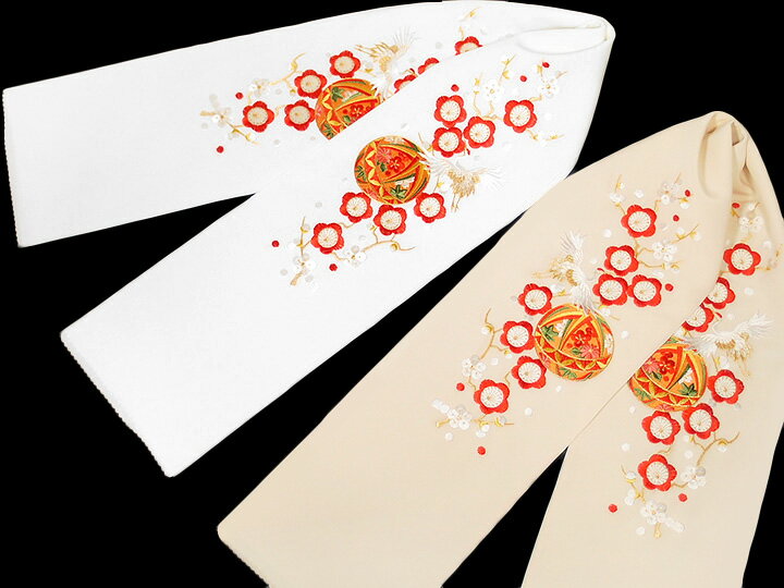 半襟 刺繍 半衿 振袖 成人式 鶴 毬 梅文様 花 古典柄 日本製 京都 白 金 桃 赤 橙 ベージュ 抹茶 水色 黒 紫 レディース 卒業式 袴姿 フォーマル 送料無料 W22 オリジ t971 Si ◆寸法 長 さ:115cm 幅 :16.5cm ◆用途 成人式の振袖や卒業式の袴にお使いいただけます。 白や金の刺繍の半衿は訪問着にもお使いいただけます。 ◆素材 日本製(京都) 生地:ポリエステル100% 刺繍糸上糸:レーヨン100% 刺繍糸上糸(金):ナイロン55% ポリエステル45% ◆色 1番:白地に金刺繍 2番:白地に白刺繍 3番:黒地に赤、橙、黄、金刺繍 4番:水色地に赤、ピンク、緑、金刺繍 5番:抹茶地に赤、橙、黄、金刺繍 6番:薄ベージュ地に赤、橙、黄、金刺繍金 7番:白地に赤、橙、黄、金刺繍 8番:白地にクリーム、薄水色金刺繍 9番:白地にピンクの濃淡と金刺繍 10番:白地に薄紫と金刺繍 ◆商品説明 豪華な古典文様の刺繍を施した、大変美しい振袖用半衿です。 梅の花枝に縁起の良い鶴と女性らしくて可愛らしい手毬の柄を表したデザインです。 日本の伝統美あふれる鶴と梅の花枝は、少し大人の渋みと上品さがあり、それでいて大変華やかです。 生地は正絹風の艷やかな光沢と張りのあるなめらかな肌触りです。 豪華さも併せ持っていますので、お祝いのお席にふさわしいアクセントになります。 古典文様のお着物と特に相性良く合わせられ、胸元に個性を添えて、お着物姿を一際美しく、気品あふれる印象にみせてくれます。 振袖、卒業式の袴姿、訪問着などの半衿を刺繍に変えるだけで着物姿が見違える程お洒落になりますし、 結婚式や成人式などお祝いのお席をより一層華やかに演出してくれること請け合いです。◆おすすめ商品◆ 半衿 帯締め 帯揚げ 草履バッグ