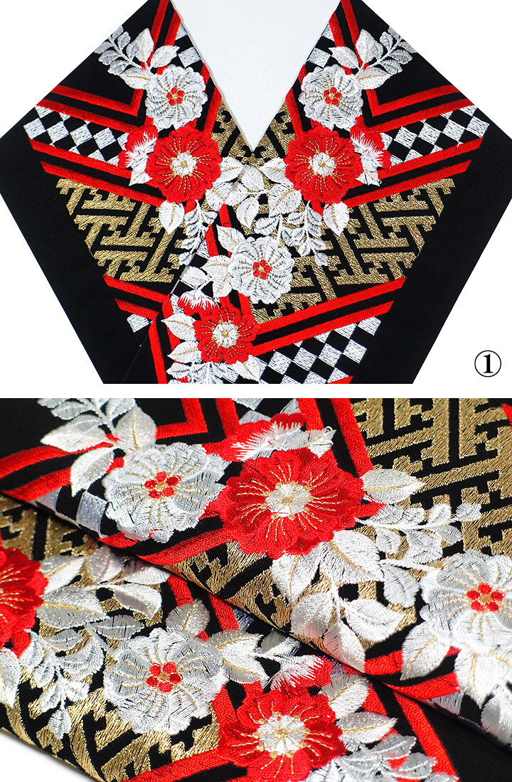 半襟 刺繍 半衿 振袖 成人式 矢羽根 辻ケ花文様 日本製 京都 白 赤 黒 橙 桃 レディース 卒業式 袴 フォーマル 送料無料 W22 オリジ u709 Si