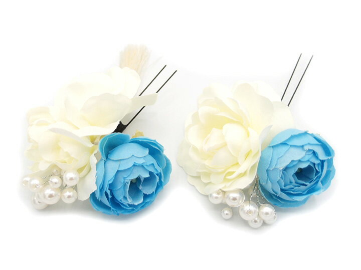 髪飾り 2点セット 水色 ダリア ラナンキュラス パールビーズ 成人式 花 和風 浴衣 着物 振袖 袴 ドレス 七五三 子供 結婚式 卒業式 入学式 送料無料 コーム ヘアアクセサリー 髪留め 日本製 ブルー W 33 323-224 u919 Si