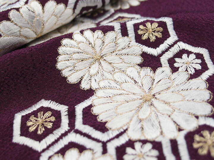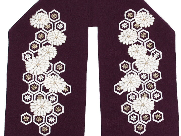 刺繍 半衿 ちりめん地 亀甲菊 chirrine 紫 金 矢羽 半襟 日本製 カジュアル 振袖 成人式 袴 卒業式 着物 小紋 紬 和装小物 街着 お洒落着 春 秋 冬 袷 単衣 半えり レディース 送料無料 T 23801018_4 w822 Si