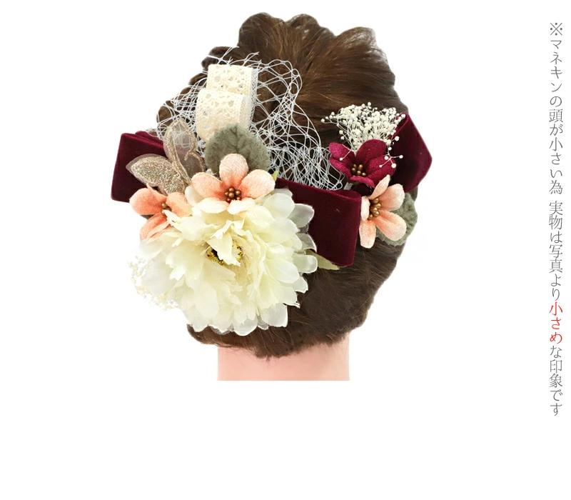 【コーム飾り】縦 約14cm 横 約15cm 高さ 約7cm 【Uピン飾り】縦 約6.5cm 横 約5cm 高さ 約4.5cm ※飾り部分のみ計測しています。コーム・Uピンは含まれません。 ◆材質 造花 金属 コーム Uピン ◆詳細 リボン 2点セット ハンドメイド ◆色 上品で優しい白 シックなワインレッド 淡く儚げなサーモンピンク色 など ◆ご利用シーン 成人式 入学式 卒業式などの フォーマルからカジュアルなお着物に ◆商品説明 あなたの美しさを引き立てるお花飾り! 上品な白の牡丹にベロア調のワインレッドのリボンやレースのリボンが飾られ、 白のチュールはぐっと華やかに♪ セット商品はアレンジもいろいろ^^ つける位置によっても雰囲気が変わります。 お顔回りにつけてパッと華やかに、 後ろにバレッタ風につけてバックスタイルもぬかりなく・・・ 好みや気分、ヘアアレンジのバランスをみてお楽しみください♪ もちろん他の髪飾りと組み合わせてもOK! 和髪飾りと組み合わせて、雰囲気を変えて楽しむのもおススメです。 シーンに合わせて別々に使っていただけますので、 結婚式や発表会や卒業式、一部のパーツを使って夏の浴衣姿など一年通して活躍できる髪飾りです! クリアケース入り商品なので、ちょっとしたギフトや保管にも最適。 素敵な髪飾りをプラスして背筋もぐっと伸び、 凛と粋な女性を演出です! キレイは自信につながる一歩です。 美しい髪飾りはつけるだけで気分も華やかに・・・。 丁寧に作られた高級感のある髪飾り。 あなたの一歩をお手伝いできたら嬉しいです。 特別な1日。 素敵な思い出に彩りを添えましょう!【おすすめ商品】 お色違い髪飾り 卒業式のリボン 浴衣髪飾り 大きい髪飾り