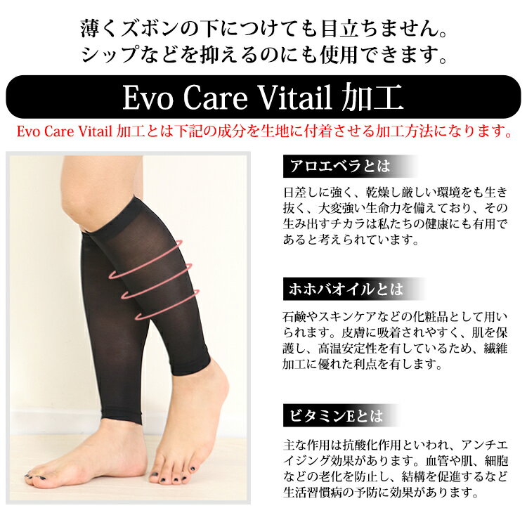日本製 2足組(4枚入り) 極薄 着圧サポーターふくらはぎ サポーター EvoCarVitail加工 アロエベラ ホホバオイル ビタミンE 20デニール レディース スポーツ 血行促進 マラソン ジョギング ウォーキング OL 立ち仕事 むくみ対策 普段履き 疲れない 伝染しにくい 送料無料