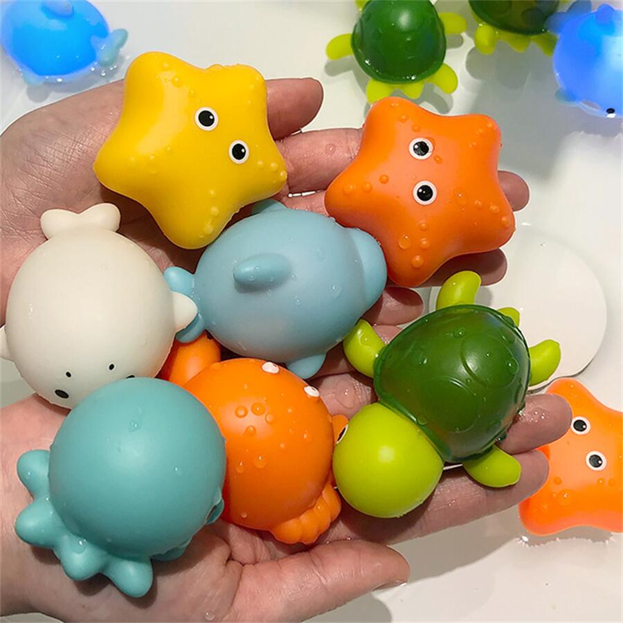【可愛い動物のお風呂おもちゃ】動物たちのお風呂のおもちゃ、水遊びのおもちゃ9点セット。カニ、星、タコ、亀、イルカ等可愛い動物設計で、子供の目を引き易い。動物のサイズも大きく誤飲の心配もありません。 【親子間のコミュニケーション】お湯に動物たちを浮かべてすくって遊んでもいいし、網で子供と一緒に何匹釣れるか競争することも、とても盛り上がるのでおすすめです。お風呂嫌いな子供でも、これでお風呂が大好きになるでしょう。お風呂の中で親子一緒に遊ぶことによって、子供は愛されていることを実感し、健やかに成長するでしょう。 【知育玩具】子供は水遊ぶが大好きですね。このおもちゃセットはスーパーボールや金魚すくいに代わる新しい遊びとして、室内で楽しめる水遊びの玩具です。指先のトレーニングで脳の発達を促して、観察力や空間を立体的に捉える力がつく、子供の集中力を養うこともできます。 【やさしい材質】ラバーのやさしい材質なので、安心してお風呂で遊べます。ちょうどいいサイズで、子供の手で握りやすいです。かわいいデザインが人気でプレゼントにもおすすめです。 【ご注意】12~20時間発光できます、電池が切れると発光しません。電池は交換できない仕様になっております。水で遊んでいないときは、乾燥した場所に保管してください。
