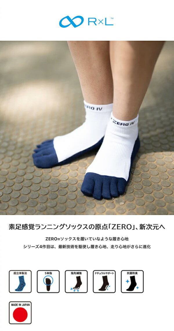 【メール便対応】R×L SOCKS アールエルソックス Type-ZERO IV ランニングソックス 5本指 ブラック 靴下