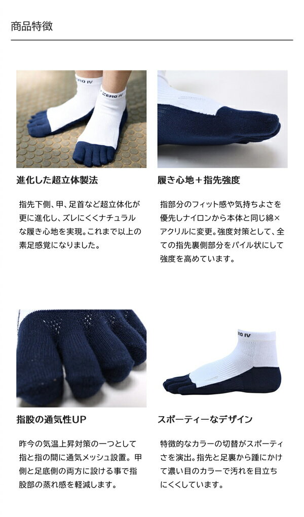 R×L SOCKS アールエルソックス Type-ZERO IV ランニングソックス 5本指ブラック 靴下 素足感覚ランニングソックスの原点「ZERO」、新次元へ ZERO=ソックスを履いていなような履き心地 シリーズ4作目は、最新技術を駆使し履き心地、走り心地がさらに進化 【進化した超立体製法】 指先下側、甲、足首など超立体化が更に進化し、ズレにくくナチュラルな履き心地を実現。これまで以上の素足感覚になりました。 【履き心地+指先強度】 指部分のフィット感や気持ちよさを優先しナイロンから本体と同じ綿×アクリルに変更。強度対策として、全ての指先裏側部分をパイル状にして強度を高めています。 【指股の通気性UP】 昨今の気温上昇対策の一つとして指と指の間に通気メッシュ設置。 甲側と足底側の両方に設ける事で指股部の蒸れ感を軽減します。 【スポーティーなデザイン】 特徴的なカラーの切替がスポーティさを演出。指先と足裏から踵にかけて濃い目のカラーで汚れを目立ちにくくしています。 素材 綿, アクリル, ポリエステル, ポリウレタン, ナイロン 生産国 日本 広告文責 株式会社ルーマニア/03-5876-8031 【R×L SOCKS】