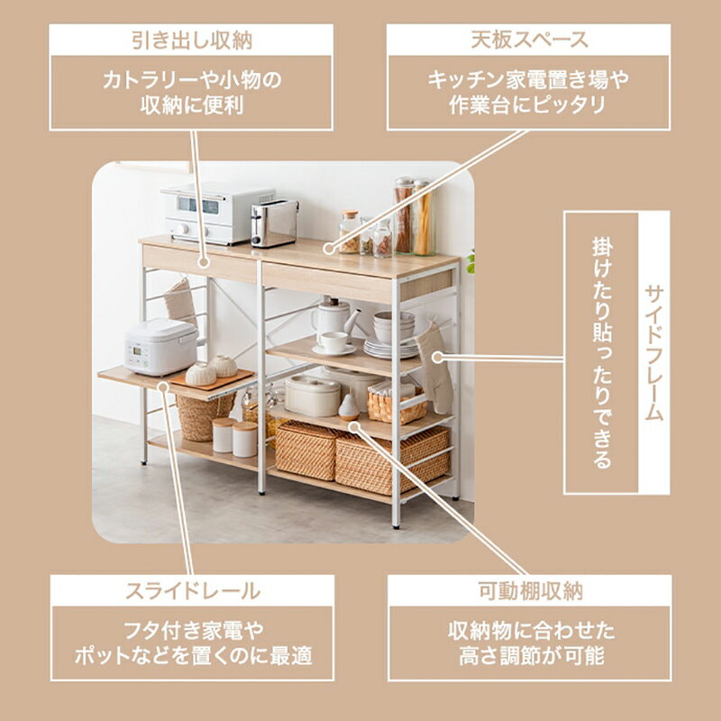 キッチンカウンター item他のキッチン収納はこちら 詳しくはここをクリック あんしん楽天お買物サポート最高30万円まで全額補償 INFORMATION / 商品の情報 CAN キッチンカウンター レンジ台 キッチン収納 キッチンボード ※お客様組み立て品です。組み立てお願いいたします。 ■商品の大きさ /SIZE 幅120cm×奥行40cm 高さ (キャスター装着時):95.5cm (アジャスター装着時):91cm ■使われている素材 /MATERIAL パーティクルボード(メラミン貼り) スチール(粉体塗装) ■商品の特徴 /SPECIFICATION ※お客様組み立て品です。組み立てお願いいたします。 ※お客様組み立て品です。2人以上での組立作業をおすすめします。 お色は、ナチュラル ホワイト ブラウンの3色をご用意しております。 ※お色の変更は価格下の選択窓からご指定の下さい。 立って作業がしやすい天板高さのカウンターキャビネット。 食器や調理器具、キッチン家電などがスッキリ片付く大容量収納。 リビング収納や、サニタリー収納、キッチン収納などにもお使いいただけます。 天板は調理家電を置いたり、作業台としてちょうどよい高さです。 限られたスペースを有効活用できるのでキッチンタイムも楽しくなります。 圧迫感を与えず、おしゃれなレンジ台・キッチンボードです。 ※お客様組み立て品です。2人以上での組立作業をおすすめします。 ※商品の仕様やデザインは、品質に問題がない程度に予告なく変更させていただく場合がございます。商品の仕様やデザインは随時改善をしており、入荷のタイミングによってはデザインが変更されている場合がございます。何度も同じ商品をご注文しているお客様はくれぐれもご注意下さい。部品、生産国、脚部の形状、サイズなどに少々誤差が発生する場合がございます。予めご了承を宜しくお願い致します。 ※サイズ・重量は概算です。 ※実際の商品の色にできるだけ近づけるよう撮影を行っておりますが、商品色はご使用のモニターによって実際の明るさや色と多少異なって見える場合がございます。 ※構造上、絶対に人は乗らないで下さい。 ※当店では代金引換はご利用いただけません。 ※ページ上で『購入可能』の状態でもタイミングによってはメーカー在庫が欠品している場合もございます。予めご了承下さいませ。 ※本商品は一部のパーツを除き基本無垢材、天然木商品ではございません。ご注意ください キッチンカウンター キッチン収納 キッチンボード ダイニングカウンター ダイニング収納 ダイニングボード レンジ台 食器棚 キッチンカウンタースリム キッチンカウンターカウンター下 キッチンカウンターナチュラルオーク キッチンカウンター大容量収納 キッチンカウンター大型 キッチンカウンターレンジ台 キッチン収納スリム キッチン収納カウンター下 キッチン収納ナチュラルオーク キッチン収納大容量収納 キッチン収納大型 キッチン収納レンジ台 キッチンボードスリム キッチンボードカウンター下 キッチンボードナチュラルオーク ッチンボード大容量収納 キッチンボード大型 キッチンボードレンジ台 ダイニングカウンタースリム ダイニングカウンターカウンター下 ダイニングカウンターナチュラルオーク ダイニングカウンター大容量収納 ダイニングカウンター大型 ダイニングカウンターレンジ台 ダイニング収納スリム ダイニング収納カウンター下 ダイニング収納ウォールナット ダイニング収納大容量収納 ダイニング収納大型 ダイニング収納レンジ台 ダイニングボードスリム ダイニングボードカウンター下 ダイニングボードナチュラルオーク ダイニングボード大容量収納 ダイニングボード大型 ダイニングボードレンジ台 レンジ台スリム レンジ台カウンター下 レンジ台ナチュラルオーク レンジ台大容量収納 レンジ台大型 食器棚150cm 食器棚スリム 食器棚カウンター下 食器棚ナチュラルオーク 食器棚大容量収納 食器棚大型 食器棚完成品 炊飯器収納 炊飯ジャー収納 引出し 省スペース 間仕切り家具 間仕切りカウンター 両面収納 両面カウンター CAN-1 キッチンカウンター 組み立て商品 カウンター レンジ台 キッチン収納 食器棚 カップボード 大きな画像で商品をチェック( 画像クリックしますと別ページで拡大画像が開きます。) +ZOOM +ZOOM +ZOOM +ZOOM +ZOOM +ZOOM +ZOOM +ZOOM +ZOOM