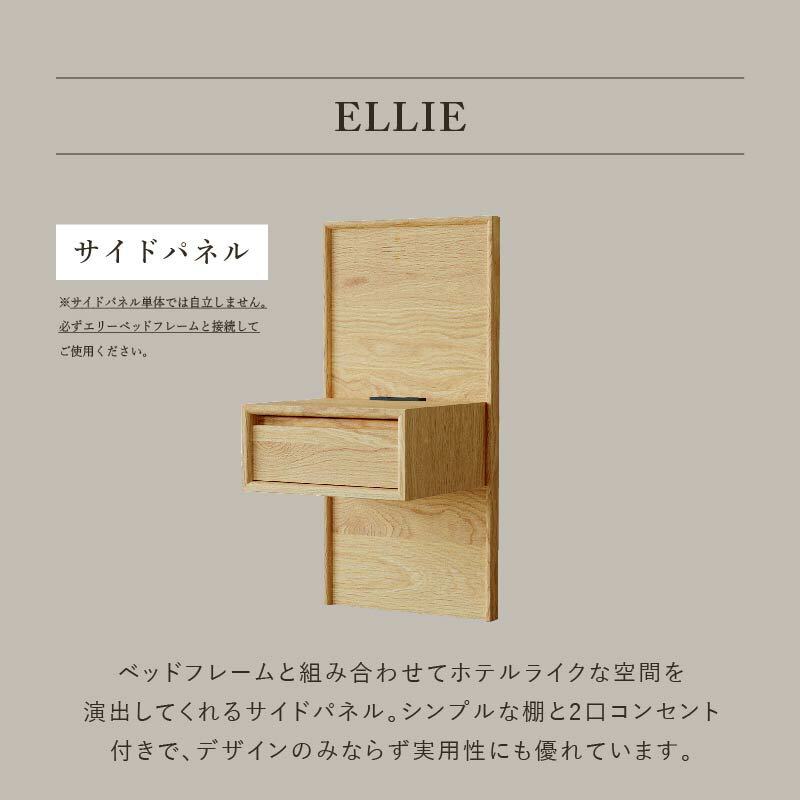 【公式】 ベッドサイドテーブル サイドパネル単品 天然木 オーク材 引出し コンセント付き エリー InRoom 関家具 宅配便