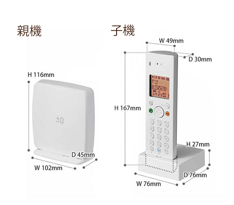 ▼ インテリアショップ roomy ( ルーミー )からのコメント ■ ±0 DECTコードレス電話機 XMT-Z040 親機+子機2台セット どんな場所にもよく馴染む優しい曲線ライン。あらゆるシーンにフィットしてくれるミニマルなデザインとちょうどいい使い勝手。そんなプラスマイナスゼロらしさが詰まった『 コードレス電話機 』が登場しました。固定電話のNEW WAVEとも言える、電話機本体には受話器がなく、コードレスの受話器が付属したイマドキのスタイル。受話器の凛とした立ち姿、艶やかなボディ、落ち着きのあるマットなフェイス、手にした時の優しいフィット感はまさに秀逸です。また、一般的な周波帯2.4GHzではなく、1.9GHzのDECT方式を採用することでお家の中の家電製品に影響されず、固定電話ならではのクリアな通話音声を確保。子機は最大5台まで増設でき、留守電話やアドレス帳などの機能も過剰ではなく不足もないジャストさを実現しています。[ ±0 DECTコードレス電話機 XMT-Z040 親機+子機2台セット ]