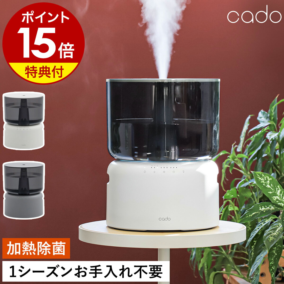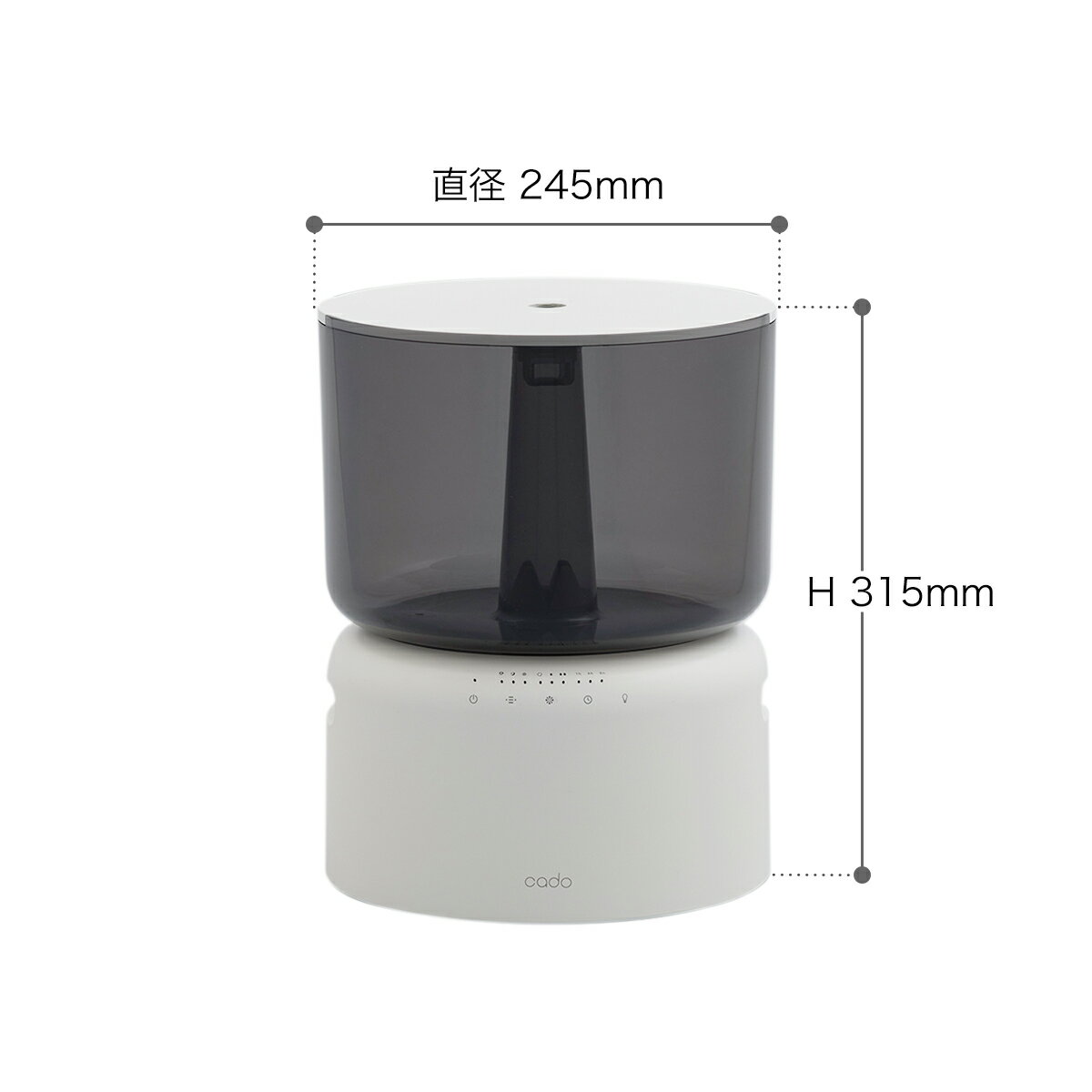 cado STEM 500H加熱除菌オートクリーン加湿器 1シーズンお手入れ不要 加熱除菌で清潔に空気潤う “ 空気をデザインする ”cado史上初の加熱除菌できるオートクリーン加湿器『 cado STEM 500H 』。超音波式と加熱式を融合した特許出願中のハイブリッド加湿テクノロジー「 クリーンヒート 」で、雑菌を99.9%除菌して清潔な潤いを届けます。1シーズンお手入れ不要のイージーメンテナンス設計、さらに電気代は一般的な加熱式加湿器との比較で約1/6と超省エネ。静音性にも優れ、寝室やリビングにもおすすめ。最大500mL/hのパワフル加湿と5Lの大容量タンクで、家族全員に安心を提供する次世代加湿器です。 スペック 品名 cado Humidifier STEM 500Hカドー 加湿器 ステム 500エイチ 品番 / JAN ホワイト:HM-C500H-WH / 4562337507868クールグレー:HM-C500H-CG / 4562337507875 サイズ 約 直径 245mm×高さ 315mm 重さ 約 3.1kg ( 本体のみ ) コードの長さ 約 1.8m 電源 AC 100V 50-60Hz 消費電力 間欠:42( 133 )W、弱:20( 140 )W、強:32( 143 )W、急速:40W※( )内は加熱運転中の消費電力。 タンク容量 約 5L 加湿方式 ハイブリッド式( 加熱式+超音波式 ) 加湿量 間欠:50mL/h、弱:150mL/h、強:350mL/h、急速:500mL/h※室温が20℃の場合。室内の温度や湿度、水温により変わります。 運転音 間欠:39dBA、弱:35dBA、強:37dBA、急速:39dBA※間欠の数値は動作中の最大値です。 適応床面積 木造和室:8.5畳( 14m² )プレハブ洋室:14畳( 23m² )※急速モード運転時。あくまで目安であり、使用状況により異なります。 機能 [ 運転モード ] オートモード:お部屋の状態をセンサーで検知し、自動で加湿量を調節。 ナイトモード:インジケーターを消灯し、加湿量控えめで静かに運転。湿度が約60%以上になると運転を一時停止、約50%以下になると運転を再開。 急速モード:素早く加湿したいときに。運転30分後にオートモードに自動切替。 マニュアルモード:間欠運転 / 弱 / 強 [ オフタイマー ] 1、4、8時間 [ 照度調整 ] 強 / 中 / 弱 / 消灯( タンク下部インジケーター / 操作パネルインジケーター ) ※操作パネルインジケーターは完全に消灯することはできません。 [ イルミネーション ] ・湿度の状態を色で表示:約 50%以上( 青 )、30~50%( 緑 )、30%以下( 黄 )、給水お知らせ( 赤 ) ・グラデーション設定:ゆっくり変化 ・ユーザー設定:任意色点灯 / 任意色ゆらぎ( 1/f ゆらぎ ) ※グラデーション / 任意色ゆらぎ動作中は、照度切替ボタンを押しても明るさの切り替えはできません。 [ 加熱運転 ] ・電源コードを接続し約30分が経過すると加熱運転を開始。水槽部のヒーターが約75℃まで上昇します。( 水槽部に水がないときは給水が行われたあとに加熱運転を開始 ) ・運転停止中でも、水槽部に水がある場合は加熱運転を行います。 ・加熱運転は約1時間。約12時間ごとに自動で加熱運転を繰り返します。 [ 使用できる液剤 ] 別売りのcado専用リキッドのみご使用いただけます。 ・Purio( ピュリオ):高機能電解酸性イオン水 ・フォレストウォーター / シトラスウォーター:香りの専用液剤( タンク、水槽部いずれでも使用可 ) [ 内部乾燥機能 ] ・本体内部( 水槽部 )への送風運転。モードボタン3秒長押しで送風開始、電源ボタンを押すことで終了。 [ 安全装置 ] ・安全機能:タンク検出、異常水位検出、本体動作異常検出、加熱運転異常検出 保証期間 メーカー保証1年 付属品 電源コード、フィルターカートリッジ CT-C500、安全上のご注意、取扱説明書、保証書 お手入れ [ 洗えるもの ]ダクト / リフレクタ / ノズル( ミスト吹出口 )/ タンク内・タンク裏側 / 本体底部のフィルターカバー・エアフィルター※その他の部分は拭き掃除でのお手入れとなります。 備考 [ 給水について ] ・タンクの水は毎日新しい水道水と入れ替えてください。 ・水道水以外の水( 精製水・蒸留水・浄水器の水・アルカリイオン水・ミネラルウォーターなど )、40℃以上の温水、専用液剤以外のアロマオイルなどは使用しないでください。 ・初めて使用する場合や水を補給した直後など、本体水槽部に水がない状態から運転する場合は、適切な水位になってから運転を開始するため、10分程度かかることがあります。 ・ミストの吹出口に水を注がないでください。故障の原因になります。 [ 加熱について ] ・加熱運転中および加熱運転完了後は、本体内の水槽部( 特にヒーター部分 )が熱くなります。タンクの取り外し等はやけどしないようお取り扱いにご注意ください。 ・本体水槽部( 水がたまる内部 )が加熱される構造です。水タンクを加熱する構造ではないため、タンク内の水は熱くなりません。 ・加熱中のミストの温度は約45℃です。 [ フィルターカートリッジ ] 交換目安:約 3~6か月 ※必ず取り付けた状態でご使用ください。取り付けていない状態の場合、水もれの原因になります。 ※フィルターカートリッジの効果がなくなると白い粉が発生し、周囲に付着することがあります。 [ 電源コードを抜いた場合 ] 電源コードを接続して運転開始した場合は、運転開始から30分後に加熱運転を行います