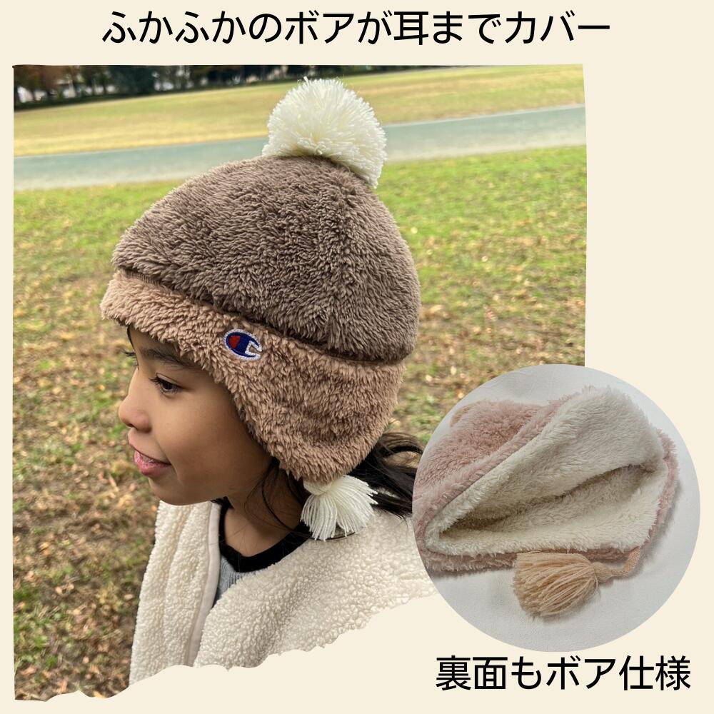 【ブラックフライデーP5倍+クーポン発行中】キッズ ボア ウインターニット キャップ チャンピオン 裏ボア 耳付き 冬用 帽子 もこもこ 子供用 男の子 女の子 耳当て 幼児 防寒 耳付 イヤーマフ アウトドア あったか おしゃれ かわいい クリスマス プレゼント
