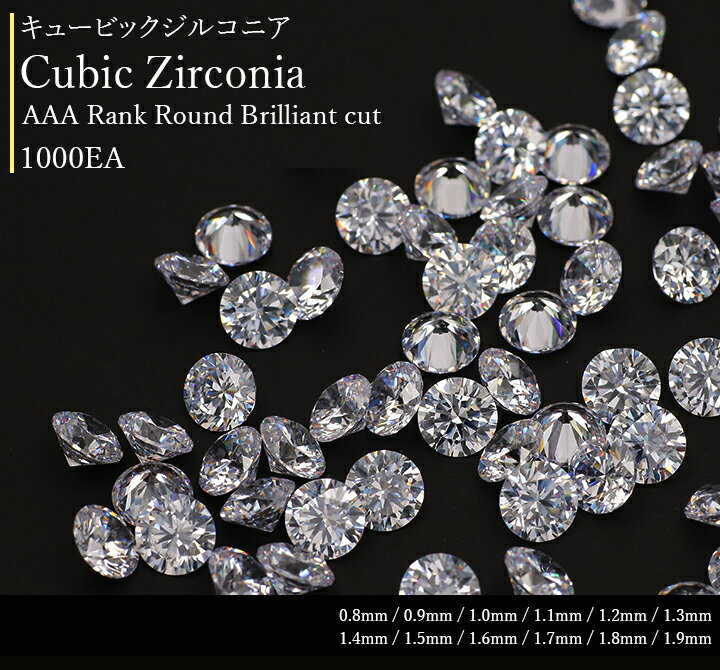 キュービックジルコニア AAA 1000ピース ラウンドブリリアントカット AAAグレード CZ 1.3ミリ 1.3mm サブストーン ルースストーン ストーン 人工宝石 最上級 日々の定番