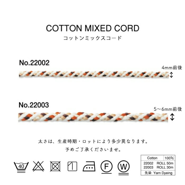 コットンミックスコードカラフルひも太さ:4mm前後(Mサイズ) No.22002