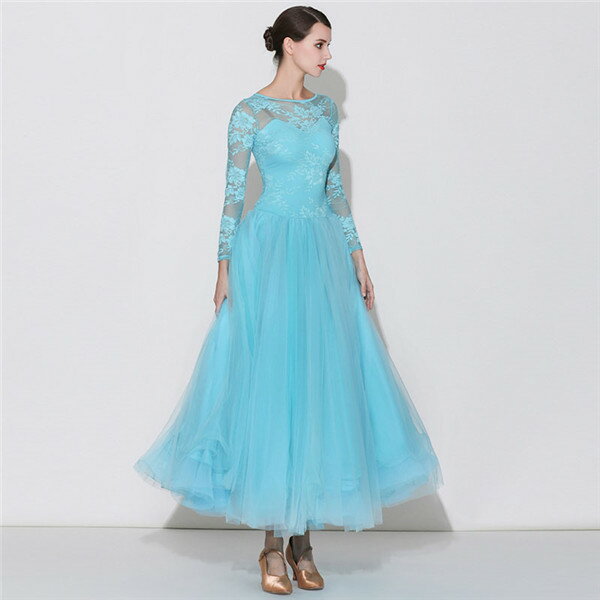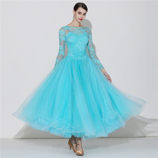 社交ダンス 衣装 ワンピース ダンス練習着 競技会 ワルツ 服 競技 インターナショナル ステージ パーティー舞台 演出 モダン ドレス 水色 【S/M/L/XL/2XL】 ダンスウエア ダンス発表会 団体 サルサダンス 競技用ドレス ステージ 演出服