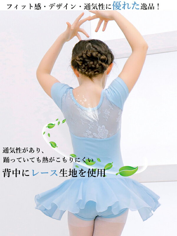 バレエ レオタード 子供 スカート付き レース 黒 子供 バレエ レオタード 子供 半袖 ジュニア コットン 綿 ストレッチ 伸縮 練習 レッスン着 新体操 水色 ブラック 黒 ピンク 演出用 100cm 110cm 120cm 130cm 140cm