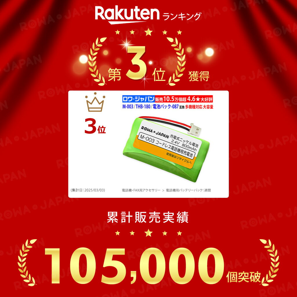 【大容量】シャープ対応 M-003 JD-M003 JD-KS110 パナソニック対応 BK-T406 HHR-T406 互換 NTT対応 CT デンチパック 086 087 ニッケル水素電池 コードレス 子機 充電池 ニッケル水素充電池 [ランキング受賞]