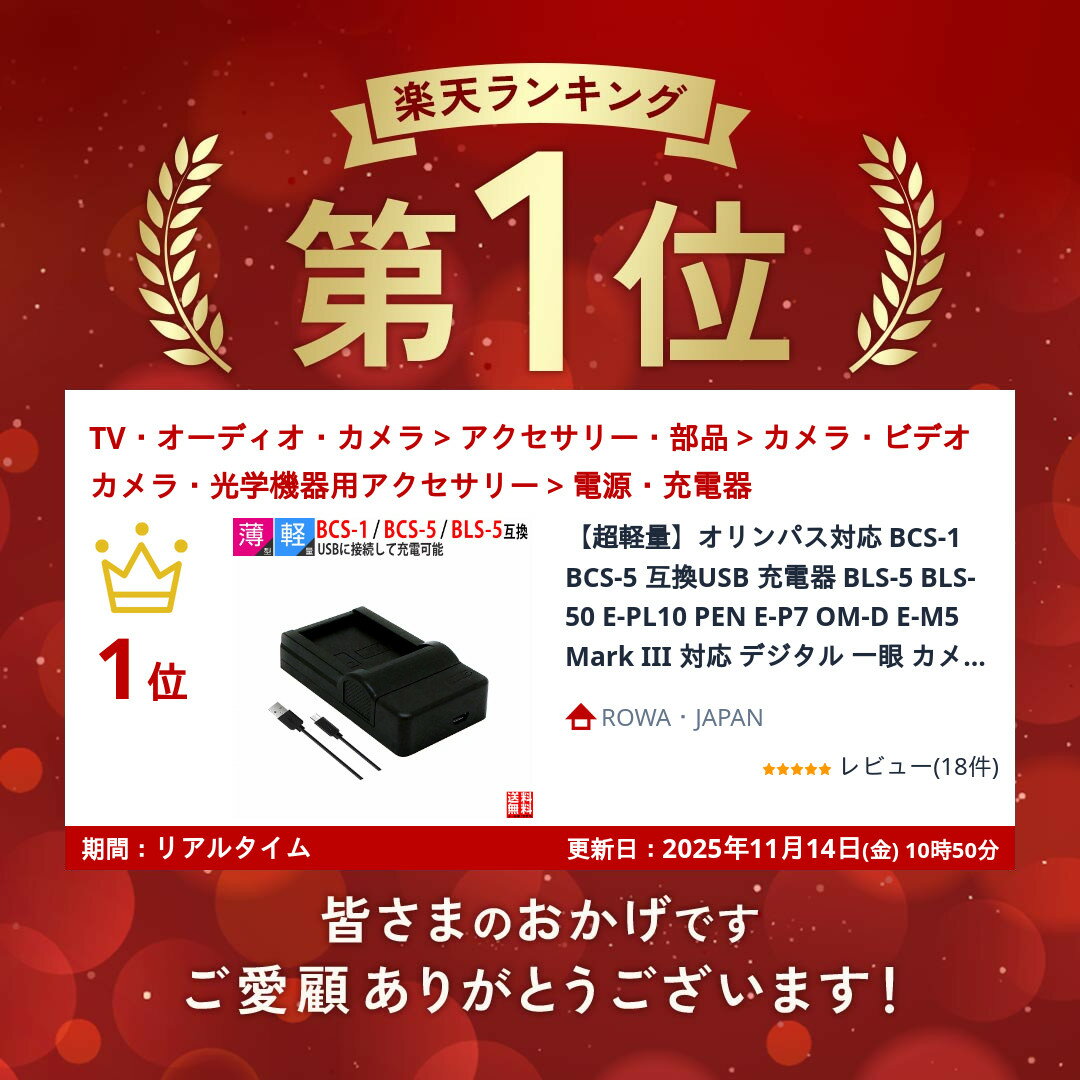 【超軽量】オリンパス対応 BCS-1 BCS-5 互換USB 充電器 BLS-5 BLS-50 E-PL10 PEN E-P7 OM-D E-M5 Mark III 対応 デジタル 一眼 カメラ[ランキング受賞]