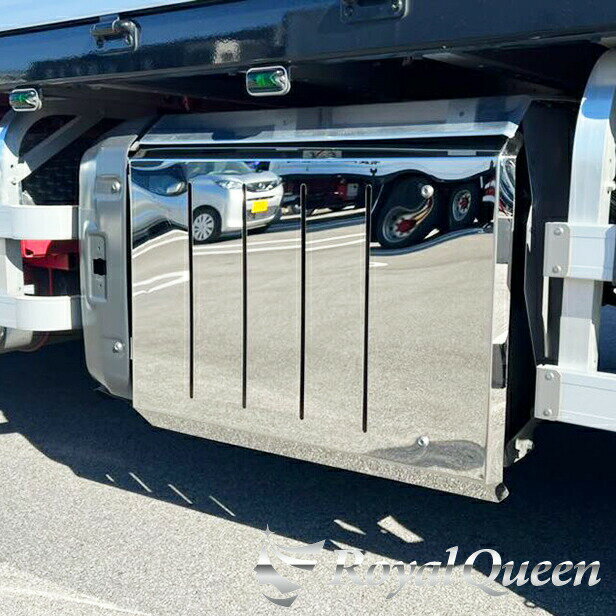品 名 新型 17/21 スーパーグレート マフラーカバー(4穴)鏡面【RQMC7F】 数量 1個 商品詳細 純正カバー交換タイプ 車体純正カバー画像を掲載しておりますので、 必ずサイズ・形状をご確認後にご購入下さい。 取り付け部分が平面のため、裏側にスペーサーとしてナット等を取り付けて調節して下さい。 ■適合車種・年式■ 新型 21スーパーグレート(R3.3〜) ※こちらは取り付け穴4個タイプです。 取り付け穴4個タイプと6個タイプの2種ございます。 純正マフラーカバーのお写真載せておりますので、 購入前に必ずお客様のマフラーの形状・サイズ等ご確認ください。 ■サイズ(約)■ 縦565mm×横765mm ■ステンレス厚み(約)■ 1.2mm 素材 ステンレス304 磨き#1000鏡面仕上げ♪ 商品注意事項 ボルト穴周りがくぼんでおりませんので、取り付けの際ボルト・ナット等で長さ調整が必要な場合がございます。 車種各車によりますが、サイドバンパー取り付け時カバー角の加工が必要な場合あります。 溶接部分はスレや磨きムラ・ウロコ柄の場合は柄が消えている部分がございますが、仕様ですのでご了承下さい。 バリが付いている場合がございます。傷や怪我の原因になりますので必ずバリを外してからご利用下さい。 取り付け知識のある方のみご購入下さい。またサイズ等もよく確認してからご購入札お願い致します。 商品によりましては社外輸入品(商品名・商品説明にある車種・機種であっても純正品ではありません)ですので、取り付け・使用時に加工・修正など様々な作業が必要になる場合がございます。 この商品による初期不良・不具合等如何なる場合であっても、取り付け・使用・加工・修正・修理などの一切の逸失利益(人身/物損事故・費用・労力などを含む) に対して、弊社では一切の補償を致しません。 公道での使用は危険ですので、イベントや撮影のみのご使用でお願い致します。 お安くご提供するため、溶接部分・仕上げの研磨等は自社の海外工場にて行っております。そのため細かなキズや溶接跡・薄い焼け等ある場合がございますが、ご了承の上ご購入お願い致します。 送料 大型商品 全国一律送料・代引手数料無料!