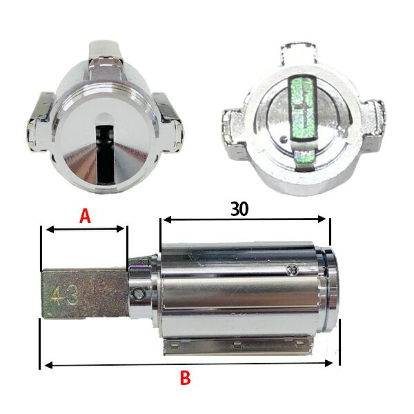 下記で型番とテールサイズをよくご確認の上ご注文ください。 ゴール GOAL V-18 PX シリンダー概要 付属キー 6本 シリンダー色 シルバー 対応戸厚 オプションにより選択できます。 納期 通常在庫品 GCY型番 刻印 テール(A) 全長(B) 対応戸厚 GCY261 43 15ミリ 50ミリ 31ミリ以上〜34ミリ未満 GCY262 46 16.5ミリ 51.5ミリ 34ミリ以上〜37ミリ未満 GCY263 49 18ミリ 53ミリ 37ミリ以上〜40ミリ未満 GCY264 52 19.5ミリ 54.5ミリ 40ミリ以上〜43ミリ未満 GCY265 55 21ミリ 56ミリ 43ミリ以上〜46ミリ未満 ※シリンダー等の色合いは実物と若干異なる場合がございます、ご了承ください。 →交換方法はこちら ※リンク先は『決済・返品・交換』ページになります。