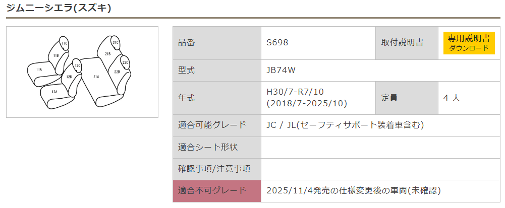 Bellezza シートカバー バーティカルラインタイプ ジムニーシエラ 型式 JB74W 年式 H30/7-R7/11/3 グレード JC/JL/JLセーフティサポート