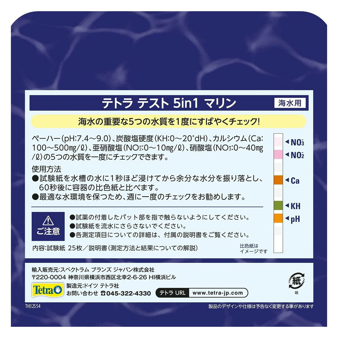 テトラ テスト 5in1 マリン 試験紙 25回分 海水専用 海水魚 テトラテスト アクアリウム 海水 水質 測定 水質検査 キット 水質チェック 水質測定 チェッカー PH値 ph ペーハー 水 ペット 飼育 水槽 飼育水 飼育用品 水槽用品 検査 クマノミ 飼育 ヤッコ チョウチョウウオ ハゼ