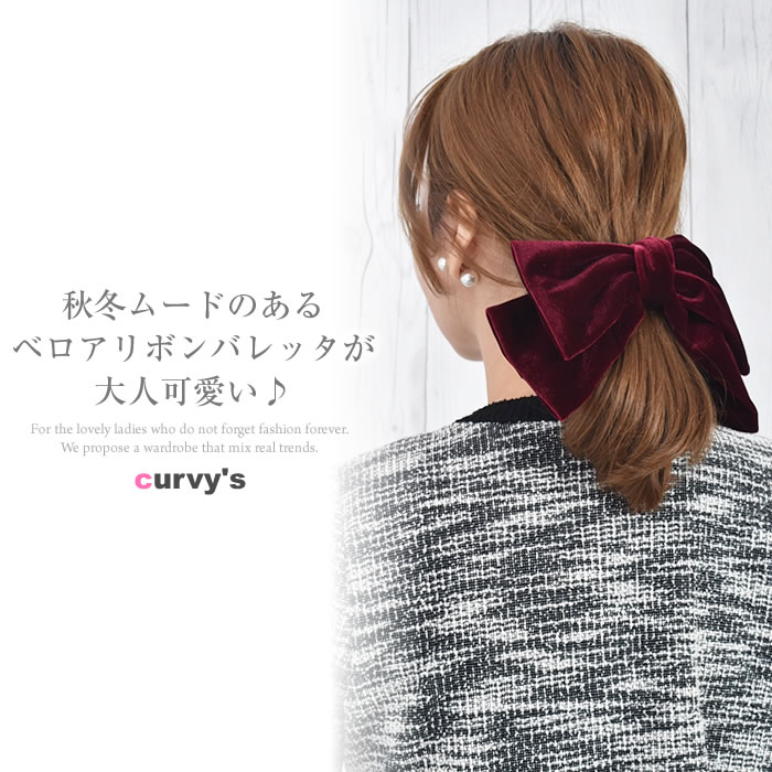 ★55%OFF★ リボン バレッタ ヘアゴム ポニーフック 大きめ ベロア 【ゆうメール便送料無料】 シンプル 大きい 結婚式 卒業式 かわいい おしゃれ 髪留め ヘアクリップ 20代 30代 40代 ゴルフ レディース ( ビッグベロアリボンヘアアクセ )