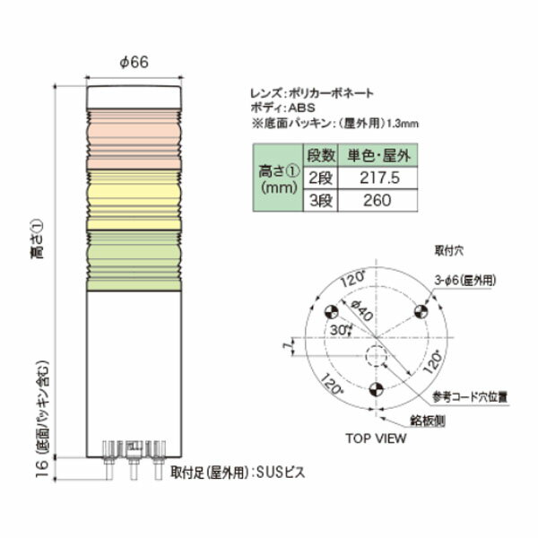 LED積層灯 ニコタワー66 単色発光 屋外仕様3段 VT06C型 VT06C-024KW3 日恵製作所