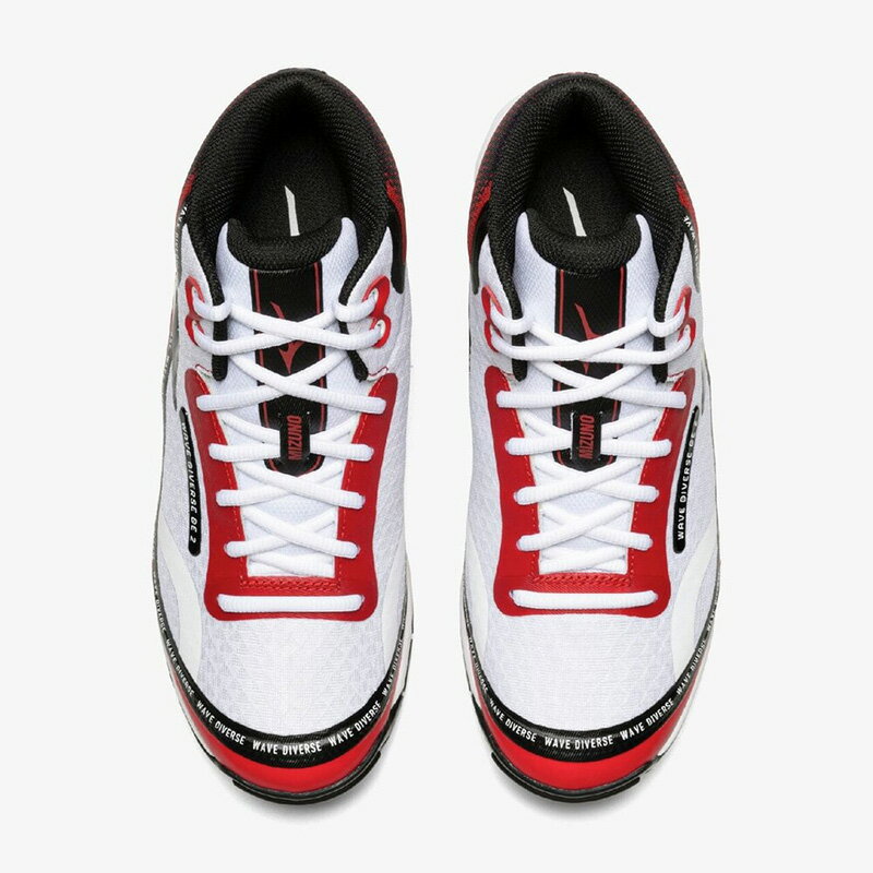 【商品名】ウエーブダイバースDE2 【品番】31GF2574 【カラー】 62:ホワイト×ブラック×レッド 【サイズ】22.0cm、22.5cm、23.0cm、23.5cm、24.0cm、24.5cm、25.0cm、25.5cm、26.0cm、26.5cm、27.0cm、27.5cm 【質量】約250g(24.5cm片方) 【素材】甲材:合成繊維×人工皮革 底材:合成底 【備考】こちらの商品は、1足でご注文の場合は、宅配袋での発送となります。 そのため、発送の際に多少の箱つぶれ等が生じる場合がございます。 なお、他の通販サイトと在庫を共有しているため、まれにご注文頂いた後でも在庫切れの場合もございます。予めご了承ください。 【販売元】ミズノ株式会社 メーカー希望小売価格はメーカーサイトに基づいて掲載しています○商品概要 「DANCE EXERCISE」の頭文字からとったDEシリーズ!より軽くより柔らかくなった、ダンスエクササイズ向けの2代目DE。 特別感のある限定カラー。 ○MIZUNO WAVE ソールの波形構造により、クッション性と安定性を両立させるミズノの基幹機能。 ○MIZUNO INTERCOOL ソールの通気孔からシューズ内の湿気を排出し、快適性を保つシステム。 ○ap+ クッション性と反発性に富んだ、高機能ミッドソール素材。 ○U4icX 中底部分に軟らかいスポンジ材を使用し、快適な履き心地を実現。 ○2E相当の方向け ○カップインソール(取り外し可)大きいサイズあり