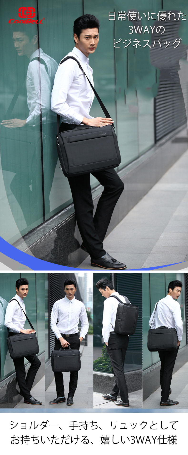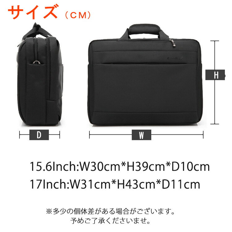 商品名 大容量ビジネスバッグ(3WAY) PCポケット(衝撃吸収素材使用) サイズ 型番:CB-5501 素材:ポリエステル サイズ15inch: 外寸:(約)縦43cm*横30cm*幅14cm PCホルダー:W28cm*D3cm*H40cm--15.6インチPC収納可能 重さ:約1.2Kg サイズ17inch: 外寸:(約)縦45cm*横33cm*幅15m PCホルダー:W30cm*D4cm*H43cm--17.3インチPC収納可能 重さ:約1.35Kg 付属品 :ショルダーベルト付き ※多少の個体差がある場合がございます。予めご了承くださいませ。 商品説明 ●ショルダー、手持ちとしてお持ちいただける、嬉しい3WAY仕様! ●メインポケットは大量量!小型出張にも対応可能です。 ●小物類の仕分け管理に便利です。 ●メインポケットにはPC専用ポケットを配置し、ノートパソコンが収納できます。 ●付属のロングショルダーベルトはバッグの両サイドの金具にフックで取り付けられます。 ベルトの長さが調節可能した様々な体勢に対応でき,更なるフィット感を実現します。 ●背面とショルダーベルトはエアメッシュ仕様で長い時間負うでもいい居心地。 商品カラー ブラック、ネイビー、ブラウン、パープル 素材 ナイロン/ポリエステル/帆布 発送 宅配便発送