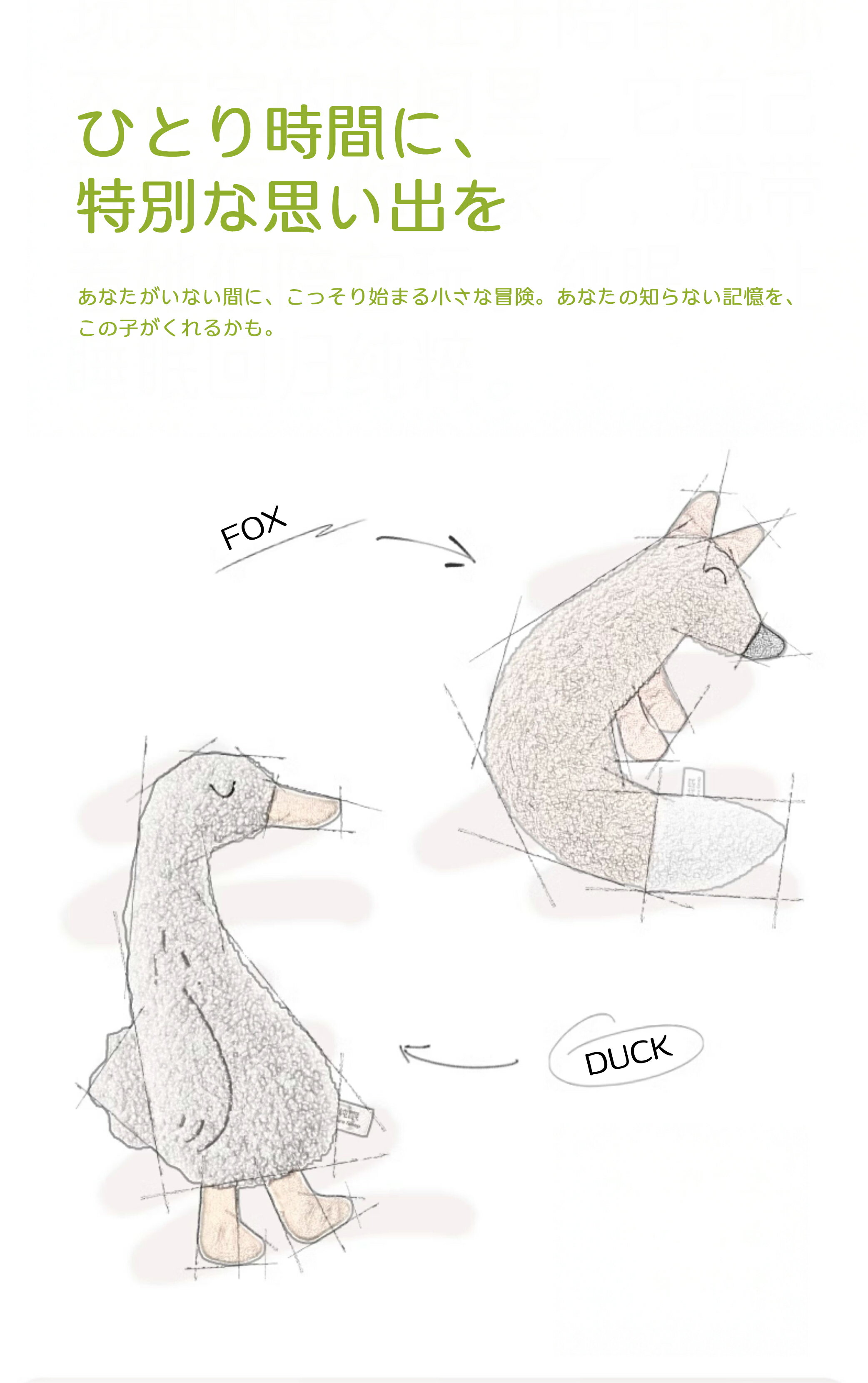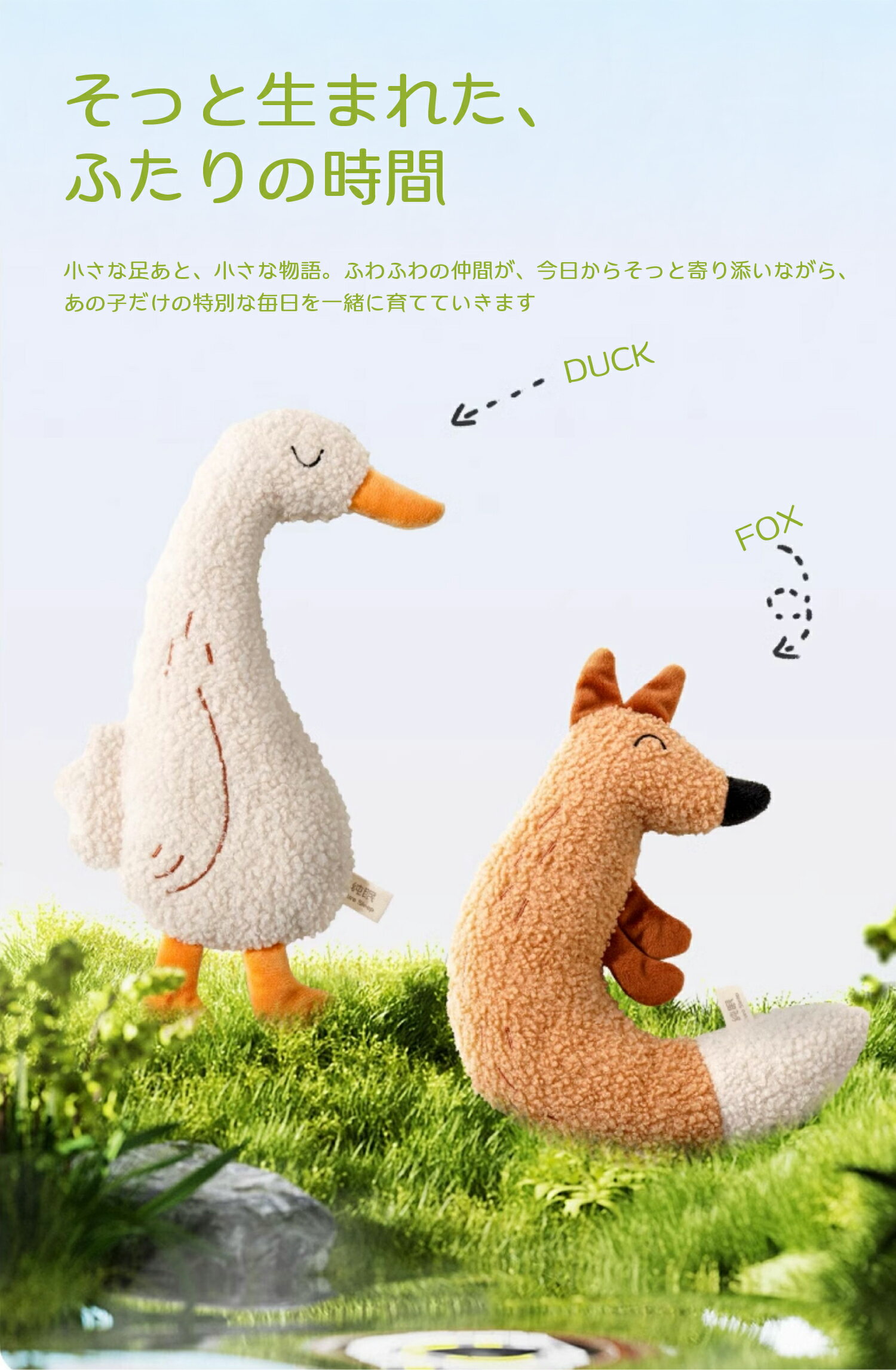 商品情報 🐾 ひとり時間にぴったりの癒し系おとも あなたがいないときも、さみしくないように。ぎゅっと抱きしめたり、寄り添ったり、猫ちゃんに安心感を届けるふわふわの相棒です。 🐾 ふわふわ&もこもこ素材でやさしい肌ざわり まるで雲のような柔らかさ。眠るときやリラックスタイムにもそっと寄り添ってくれる心地よさ。 🐾 思わずくんくん、気になるフォルム くるんとしたシルエットや表情に、猫ちゃんの好奇心もくすぐられる。じっと見つめて、くんくんして、仲良しに♪ 🐾 ぴったりサイズで抱きやすい 大きすぎず小さすぎず、ぎゅっと抱えたり顔を乗せたりするのにちょうどいいサイズ感。寝転んでもリラックスできる形状です。 🐾 インテリアにも馴染むシンプルデザイン 動物モチーフながら色合いは落ち着いていて、お部屋に自然と馴染む優しい存在感。プレゼントにもおすすめ! 仕様・スペック サイズ(約) ● ダック:12×28cm / 約43g ● フォックス:20.5×23.5cm / 約42g 材質 ポリエステル お手入れについて 洗濯機でのお手入れも可能です。 生産国 中国 ご購入前の注意事項 ・本製品はペット用のおもちゃです。 ・使用中に破損やほつれが見られた場合は、すぐに使用を中止してください。 ・強く噛み続けたり、引っ張ると破損する場合があります。 ・猫ちゃんの性格や好みによって、遊び方には個体差があります。