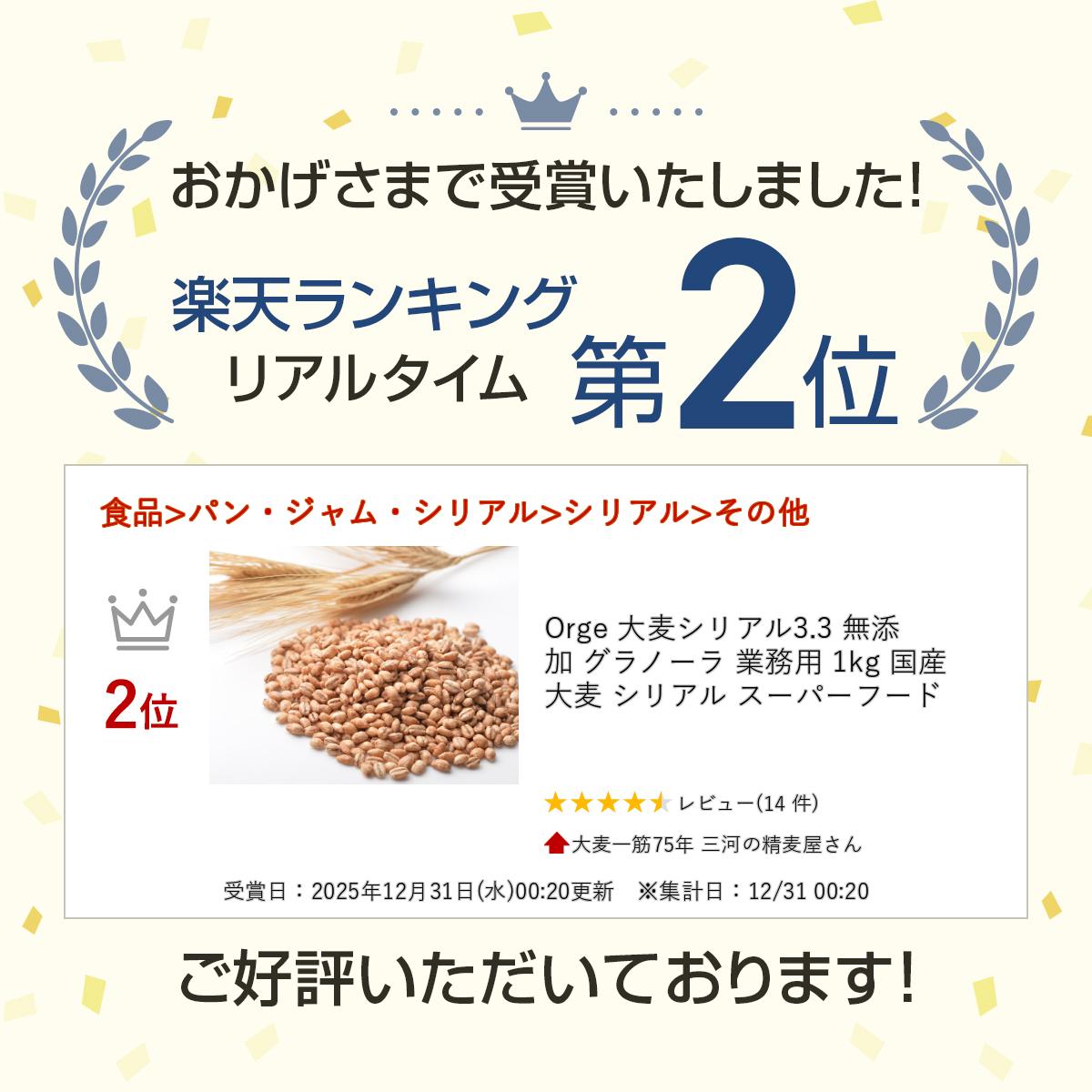 Orge 大麦シリアル3.3 無添加 グラノーラ 業務用 1kg 国産 大麦 シリアル スーパーフード 楽天ランキング受賞