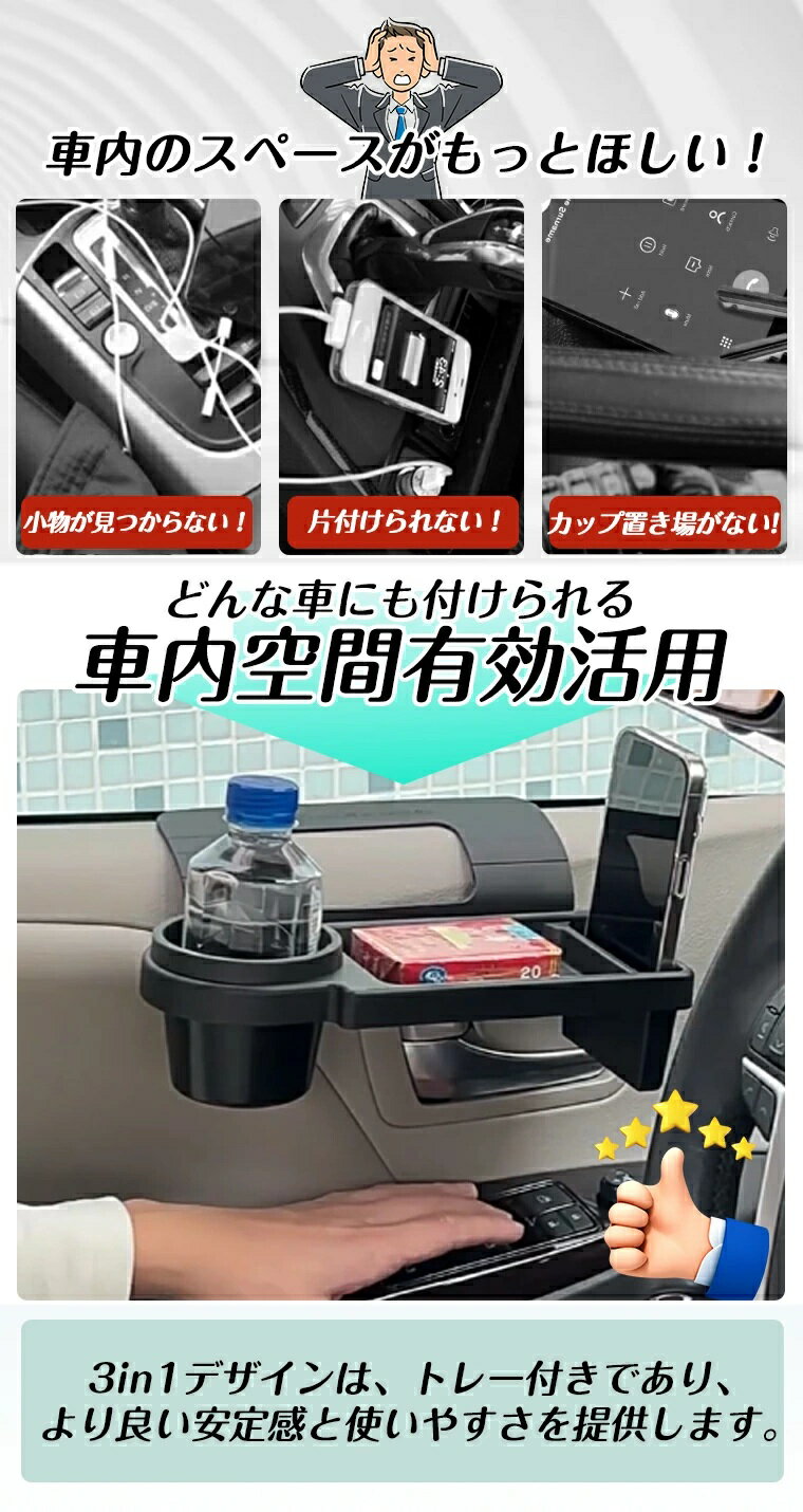 【最大2000円OFF★ブラックフライデー】ドリンクホルダー 車 水筒 車載 サイド カップホルダー 車 ドリンクホルダー 車 車内収納ポケット車載収納 ドリンクホルダー 水筒 サイド収納ボックス カップホルダー 車 増設 ドリンクホルダー トレイ付き スマホ入れ 取付簡単