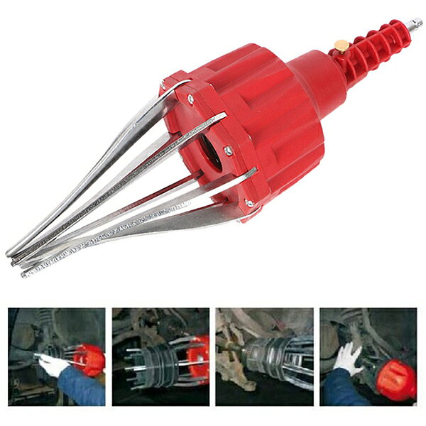 車検時に必ずと言っていいほど交換するドライブシャフトブーツが手間ひま掛けないで簡単に交換できる画期的なエアーツールです。 ■特徴 ・伸縮ブーツをセットしたら、エア圧を利用し、8本の爪を均一に押し広げます。 ・本体中央にシャフトの逃げ穴スペースがあるので、ハブ部スプラインが長いシャフトにも対応可能です。 テスト動画はユニバーサルドライブシャフトブーツ H111を使用 ■商品仕様 ・爪部拡げ径 : 25〜110mm ・使用空気圧 : 6〜8kg/m2 ・材 質 : (本体)樹脂 (爪部)スチール ・口金取付ネジ : 1/4" ・全 長:470mm直 径:140mm ・重 量:2.1kg ※各メーカー純正ブーツは柔軟性がないため広げることができません。