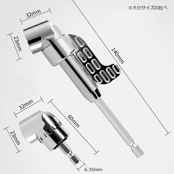 ショート+ロングの2点セット 電動ドリル用アングルビットアダプター 狭い場所用 YZE016
