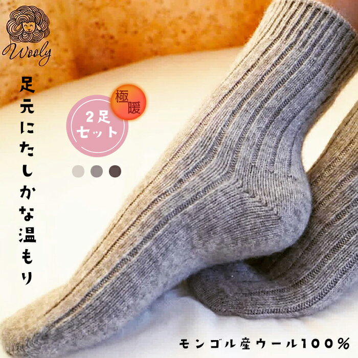 【Wooly】モンゴル産 ウール 靴下 100% 2足セット 無染色 防寒 ウールソックス メンズ レディース 男女兼用 冬用 あったか 冷え性対策 S.D.W S.Darwin