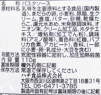 ハチ食品 パスタボーノ 生クリーム仕立てのたらこクリームソース 110g