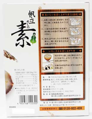 ※40個まで1個口分の送料で発送可能です。 家庭でカンタン、気軽に本格的な帆立の釜めしを味わうことができる“釜めし(2合用)の素シリーズ・帆立”。にんじんや油揚げ、コンニャクなどを加えると、さらに美味しさが引き立ちます。人数の少ない家庭にぴったりの2合炊き用釜飯の素です。お好みで色々な具材と一緒に炊き込めば、よりいっそうおいしくお召し上がりいただけます。当店は複数のショッピングサイトで販売しており、在庫を共有しております。 在庫には注意しておりますが、ご注文を頂いた時点で在庫切れの場合もございます。