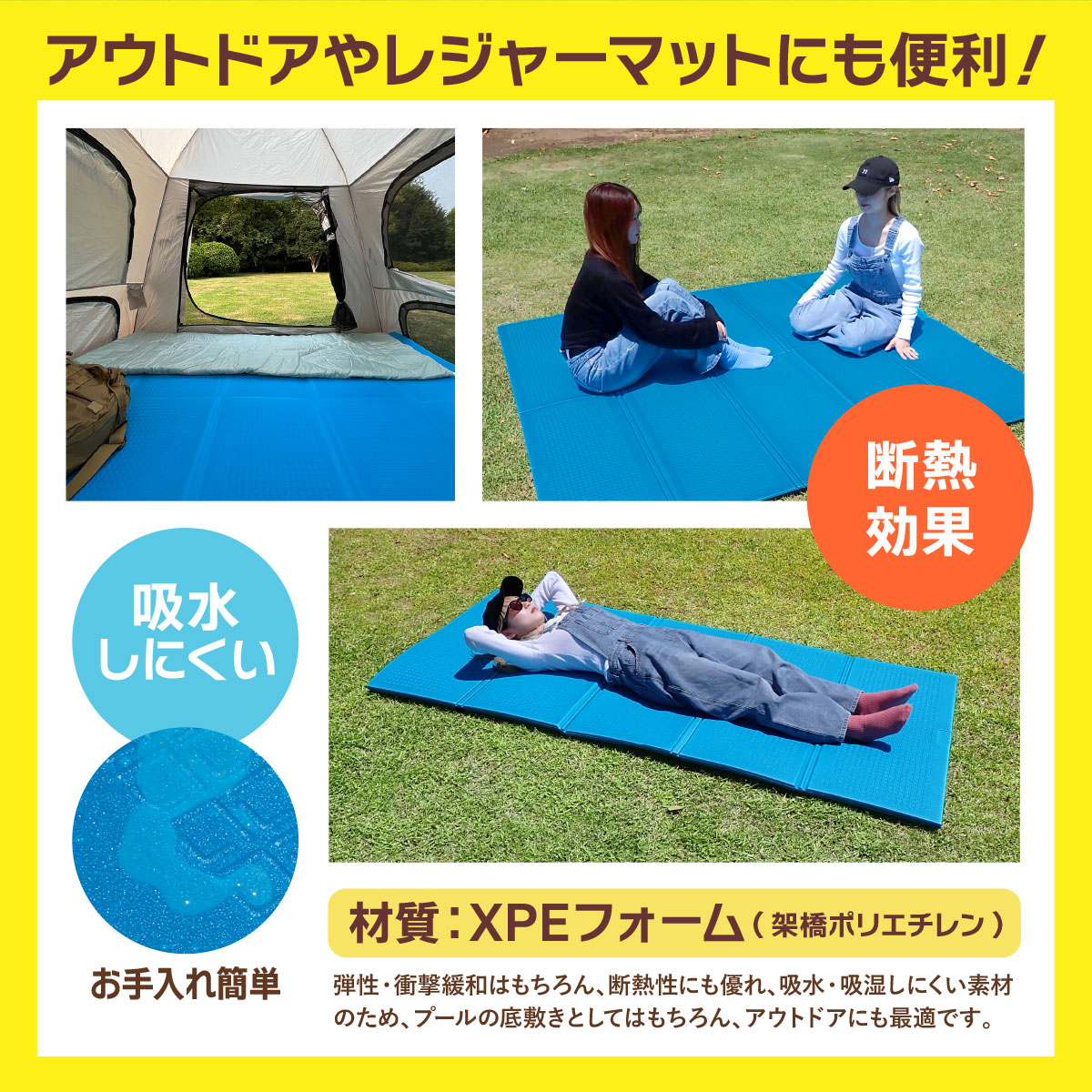 商品詳細●商品の状態新品・未使用品●商品名厚さ1cm 厚手 プールマット ビニールプール用シート プール下シート 家庭用プール プール敷きシート ファミリープール 折りたたみ式 オリジナル収納袋付 アウトドアマット 水遊び用マット●商品スペック展開時:サイズ:約180cmX約200cmX厚さ1cm収納時:サイズ:縦415mm 横900mm 高さ110mm重量:720g素材:XPEフォーム 架橋ポリエチレン素材防水加工SOLオリジナル収納袋付属●商品説明お客様のお声を生かし厚さに拘りぬいたプールマットになります。緩衝性に優れたXPE素材を使用しており、コンクリートや砂利の上でもプールの底付き感が軽減され、プール本体も傷みにくくなります。防水加工を施しているので、乾きやすくお手入れも簡単です。プールマット以外でもレジャーシート代わりにもなり、キャンプやピクニックにもストレスなく使用できます。SOLオリジナル収納袋付なので、旅行やちょっとしたお出かけにも楽々持ち運びができます。●ブランドマット本体:優良品収納袋:SOLオリジナル●備考※入荷時期により予告なく商品の細かな仕様の変更がある場合がございます。※輸入商品の為、ご利用には支障のない程度の微細な小キズ、微妙な撓りや汚れ、パッケージにしわ、凹みが発生する場合がございます。予めご了承ください。※商品画像はイメージとなっております。INFORMATION●お支払いについて・クレジットカード決済・銀行振込(前払)・セブンイレブン(前払)・ローソン、郵便局ATM等(前払)・後払い決済・代金引換(現金のみ)●発送方法について 佐川急便または、西濃運輸・ゆうパック・クロネコヤマト・福山通運など当社指定の運送会社にて発送となります。※運送便のご指定は一切できません。 営業所留めを希望される場合、ご注文時にご希望の営業所名・営業所住所をご要望欄へご指定下さい。 ※発送予定の運送会社を確認されたい方は、ご注文前に必ずお問い合わせください。●発送のタイミングについて平日は当日発送18時まで可能です。(土曜・日曜は当日発送9時まで)ご注文のタイミングによっては、当日発送が出来ない場合がございますのでご了承下さい。※下記該当の場合は当日発送できません。・当店が休みの場合(翌営業日の発送になります)。・お支払方法が銀行振込みで、18時までにお振込みの確認が取れなかった場合(15時以降のお振込みの場合、当社着金が翌営業日になる可能性がございます)。決済の審査が必要なお支払い方法(クレジットカード・後払い決済)をご選択された場合、楽天の審査にお時間をいただくことがあり、当日発送ができない場合がございます。予めご了承ください。※銀行振込、コンビニお支払い等、前払い制の決済方法をご選択された場合は、ご入金確認が完了してからの発送となります。●保証について商品到着後14日以内の保証となります。当店側のミスでお手元に届いた商品が違った場合は、商品到着後14日以内での対応となりますので、速やかな商品確認をお願い致します。保証内容はご購入頂いた商品のみとなります。万が一商品に不具合が生じた場合新たに商品のご手配をさせて頂きますが、ご手配できない場合には商品代金のみご返金させて頂きます。商品交換時に発生する費用および損害等は保証できませんのでご了承下さい。保証申請時には商品の不良申請書または診断結果および診断書【コピーでも可】・お車の車検証をご提出いただく必要がございます。また症状や状態によっては商品の状態の確認がとれるお写真をいただく場合もございます。取付ミスによる不具合や破損、加工済は保証対象外となります。●お取引に関してお振込でお支払の際は、ご注文後5営業日以内にお手続きお願い致します。ご連絡やお手続き頂けない場合には、「お客様都合」によるキャンセルをさせて頂く場合がございます。ご注意ください。ご注文の場合には同意されたものとみなさせて頂きますので、ご不明な点がある場合は、必ずご注文前にお問い合わせ下さい。●その他パッケージにダメージがある場合が御座います。写真撮影の為、パッケージを開封する場合が御座います。●お問い合わせ先【株式会社エスオーエル】〒221-0031神奈川県横浜市神奈川区新浦島町一丁目1番地25 GRC横浜ベイリサーチパーク 10階TEL:045-450-6218 / FAX:045-330-4015e-mail:sol-info1@s-o-l.co.jp営業時間:10:00〜18:00(土・日・祝祭日を除く)●出荷倉庫【株式会社エスオーエル パーツセンター】〒292-0824千葉県木更津市小浜276-3