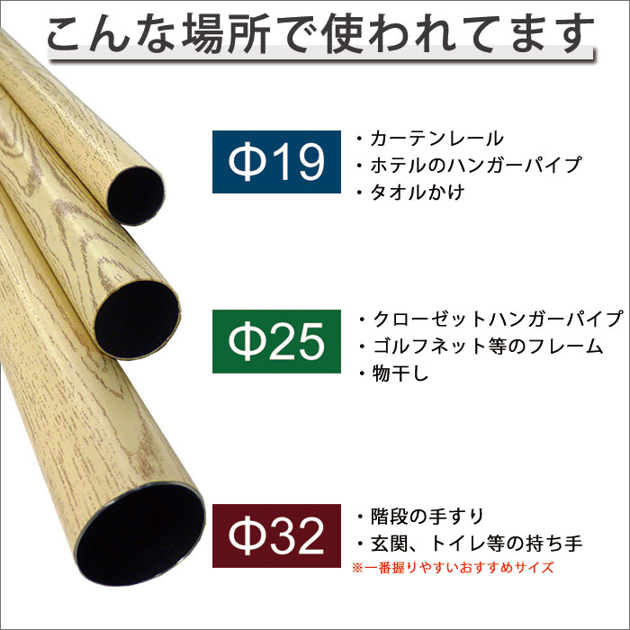 パイプ カラー白木目 32mm 151cm〜180cm 丸パイプ カット無料 パイプ 木目 おしゃれ DIY クローゼット ハンガーパイプ 洋服掛け 手すり 棚 タオル掛け 工作 H-N-0